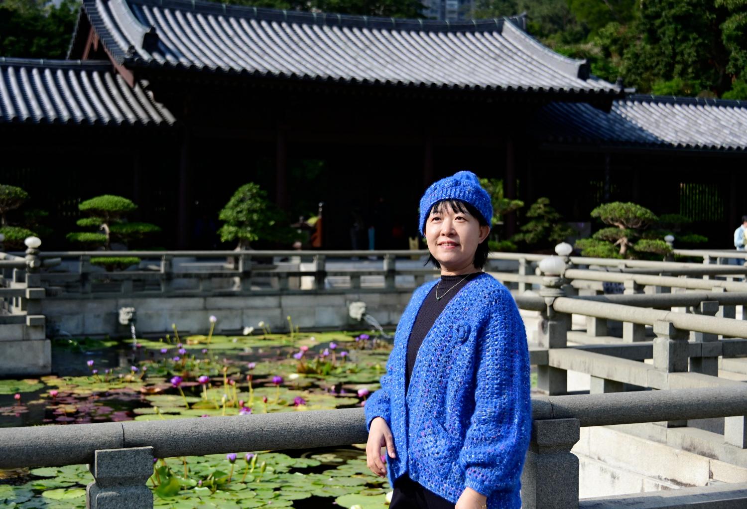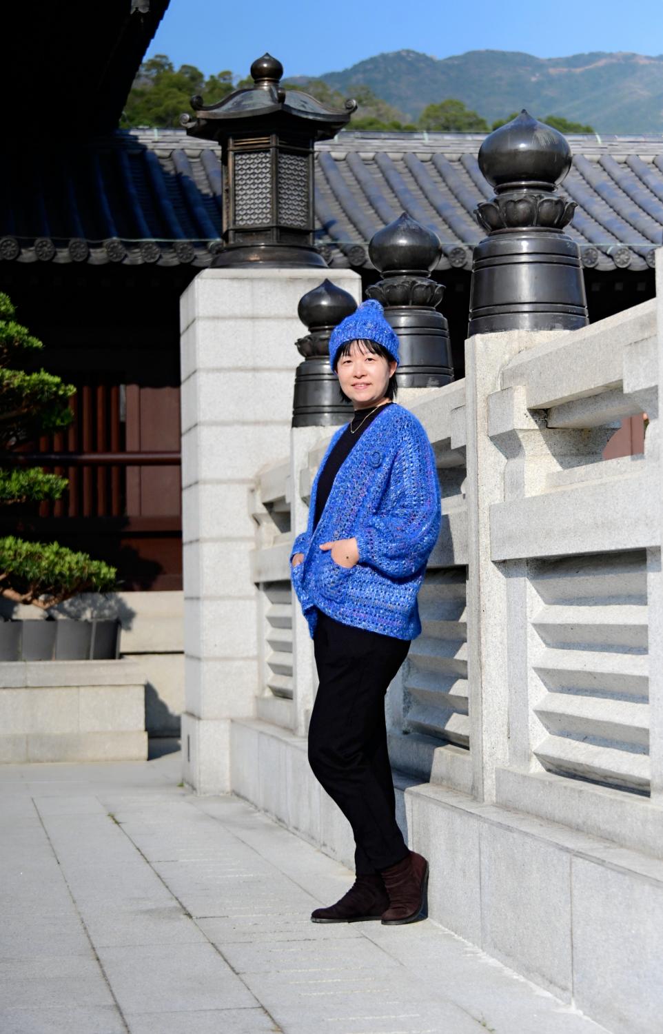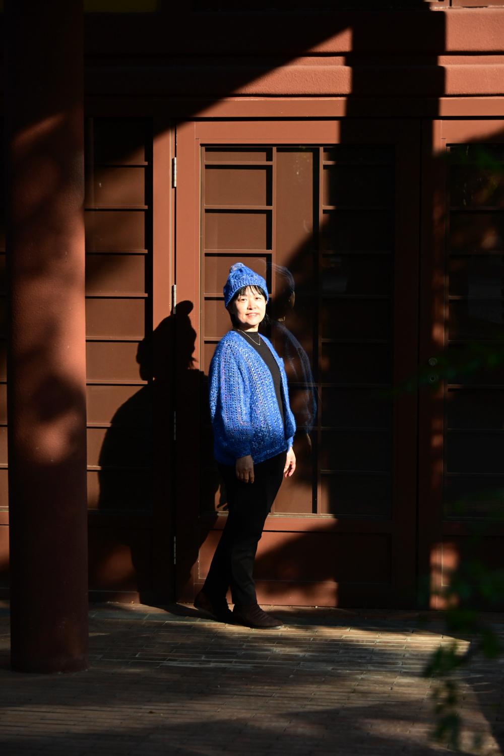 特意穿了新钩的毛衣和毛球帽,在Aiinksy的镜头前,只需那么一站,美感就翻了倍。