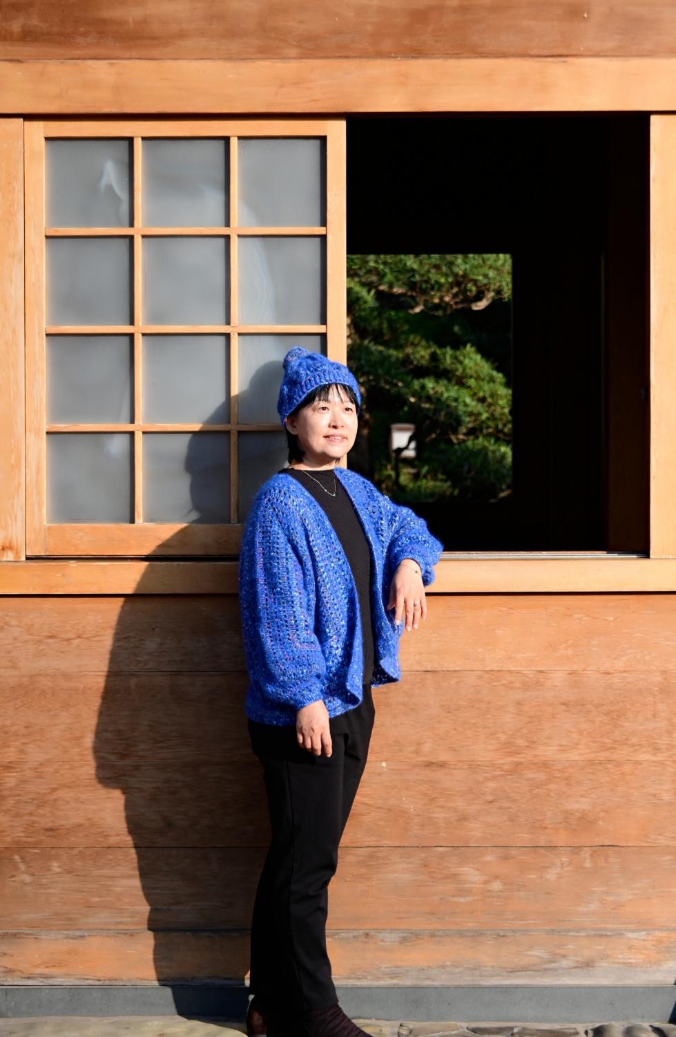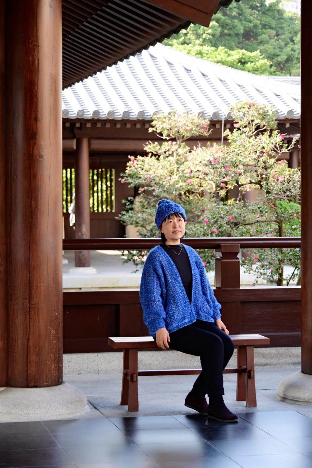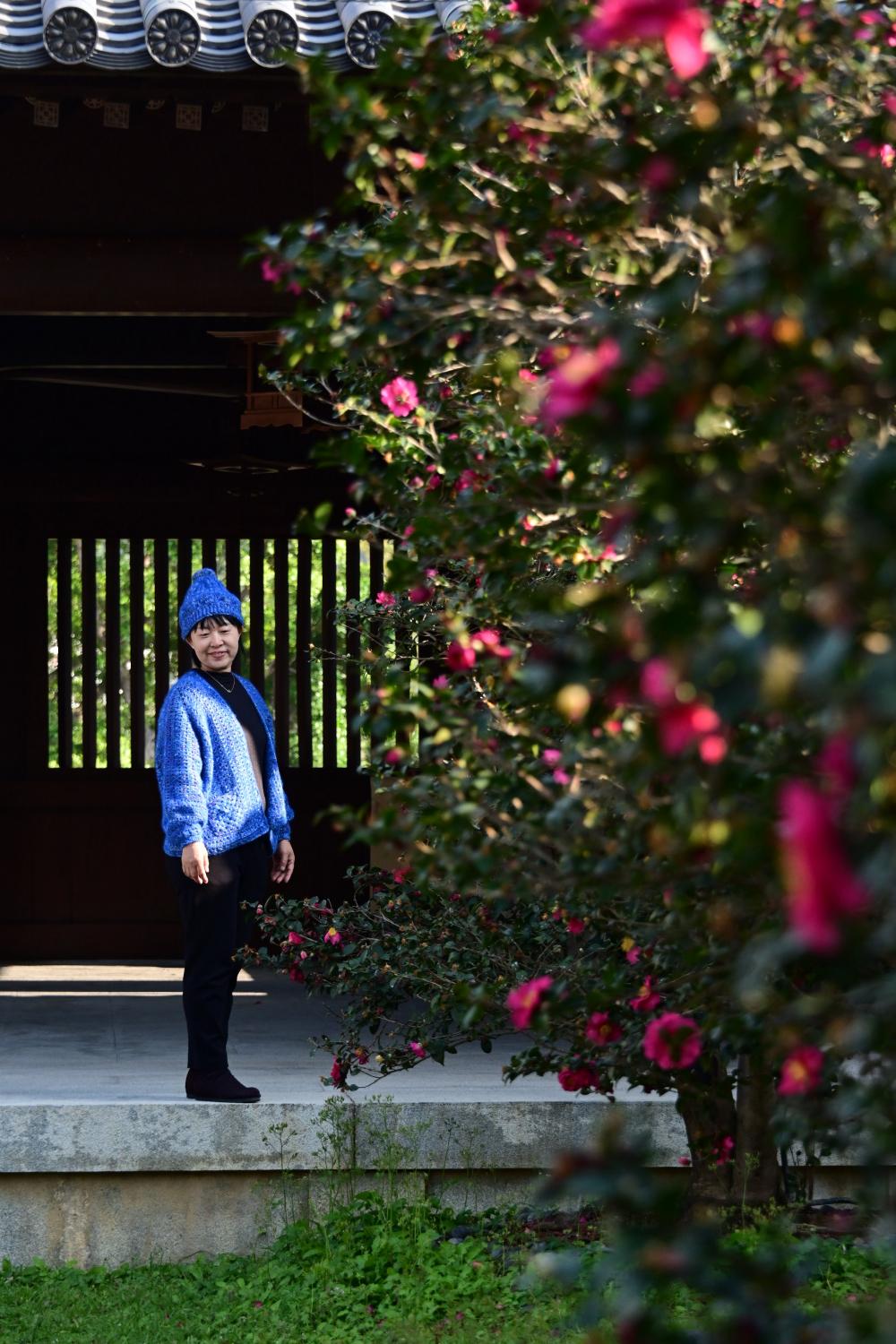 特意穿了新钩的毛衣和毛球帽,在Aiinksy的镜头前,只需那么一站,美感就翻了倍。