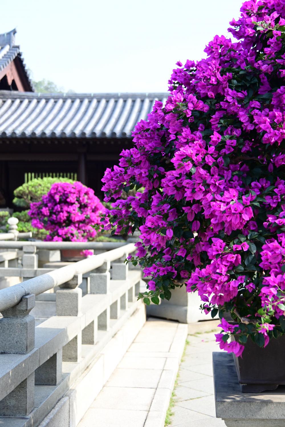 莲池边分散着几盆簕杜鹃,开满了,开得极艳。