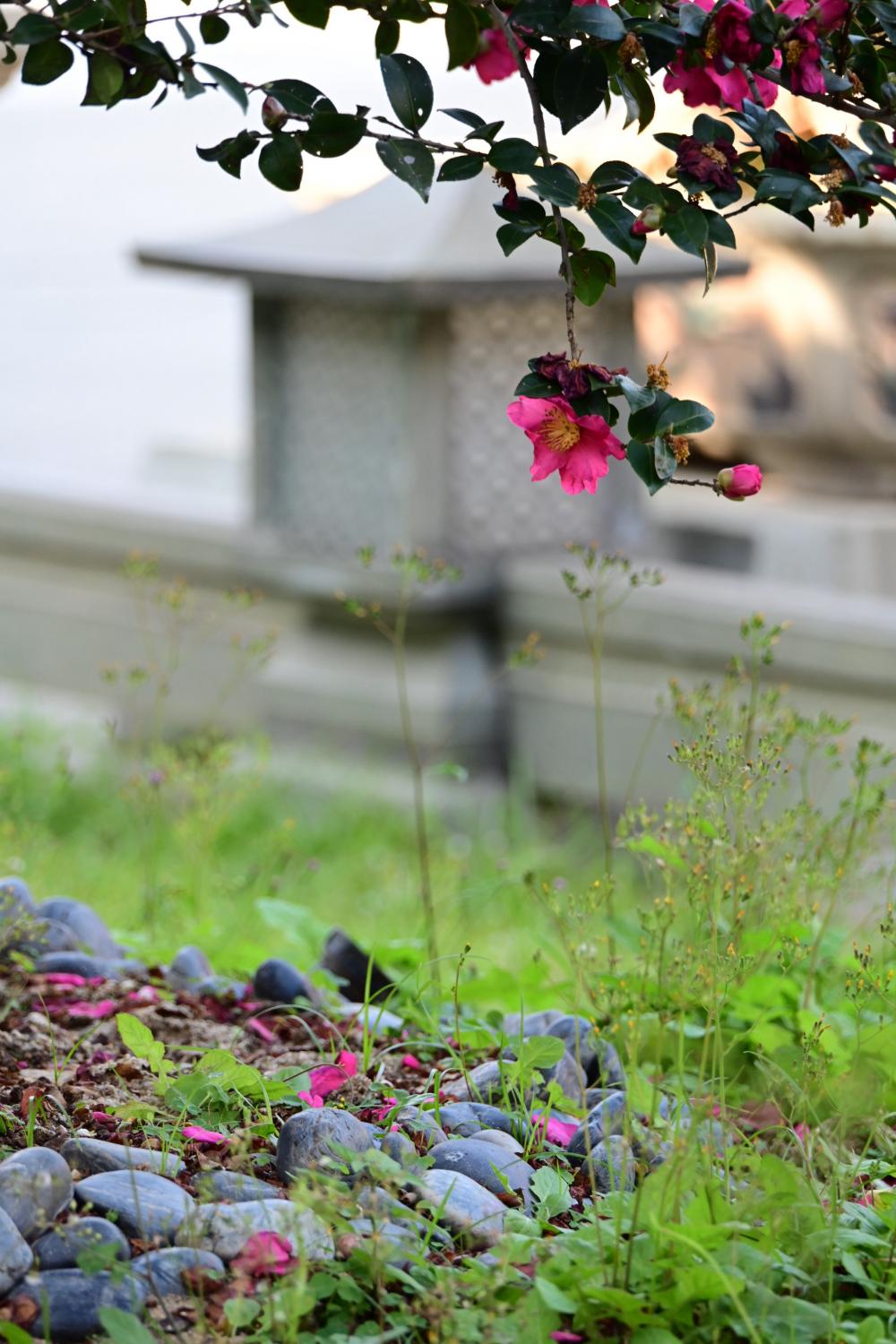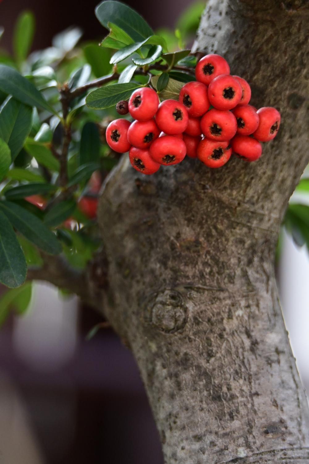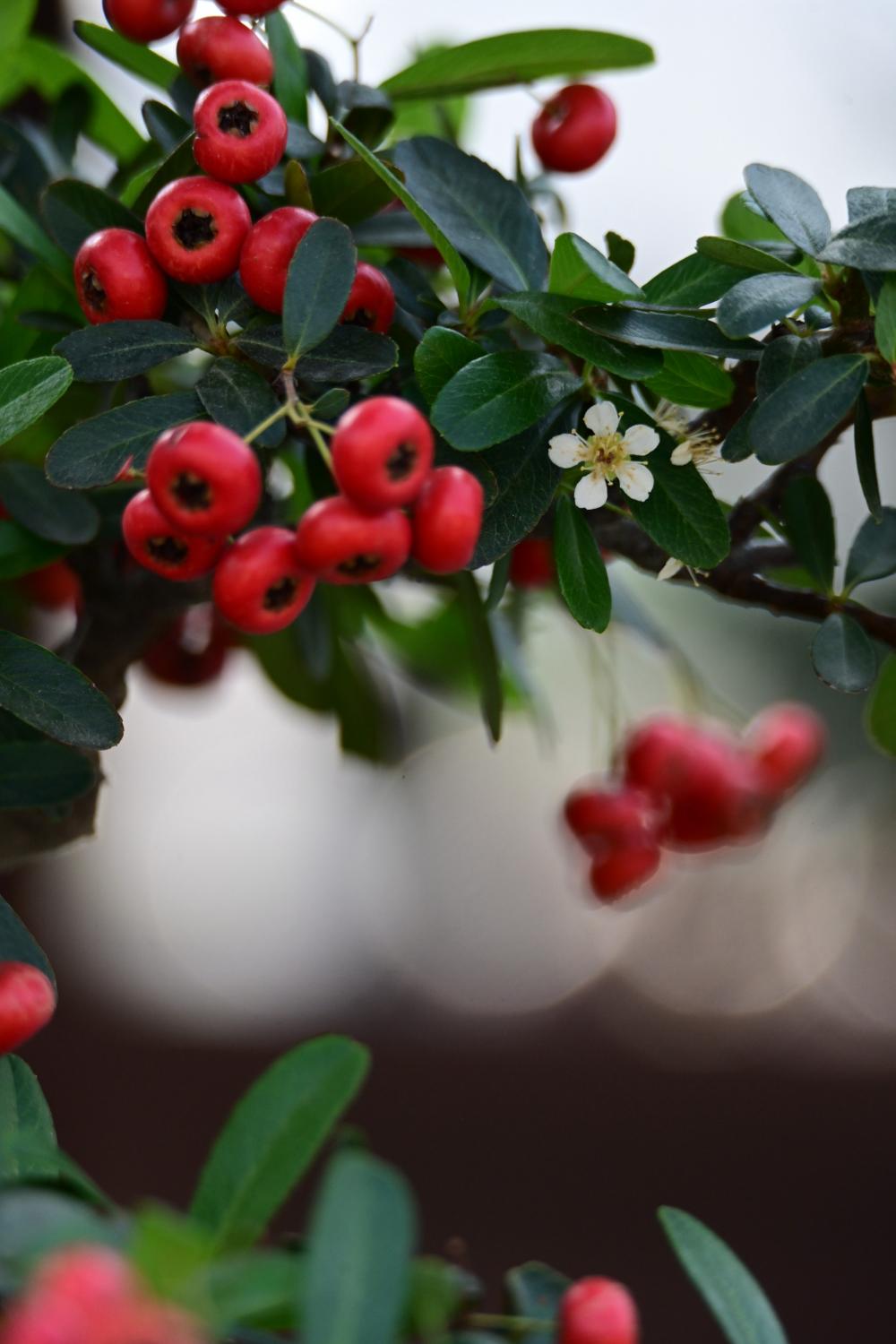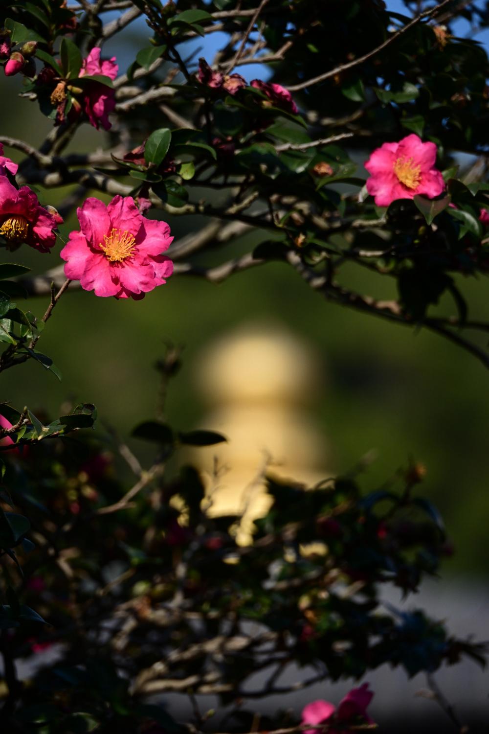 火棘摆放的位置,有几株茶花,也在盛开中,似乎有丢丢开过了。