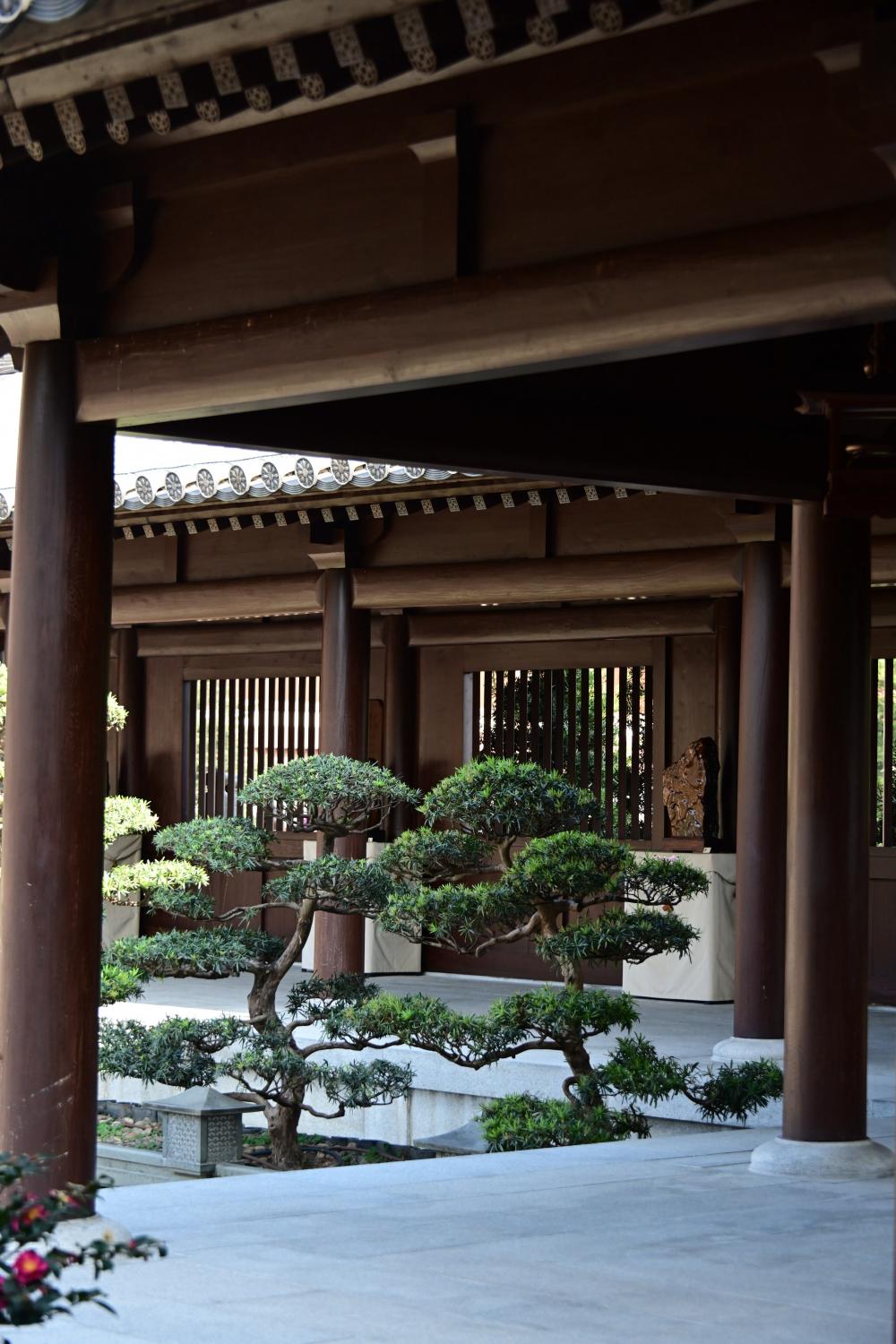 大雄宝殿的殿柱以黄桧木制成,会发出阵阵幽香。部分木柱有过百年历史,被砍下来时,放在海内经三年释放水份,半年阴乾,使木内只馀百分之二水份,裂纹留作木柱用作释放馀下水份,故木柱懂得呼吸、有生命。