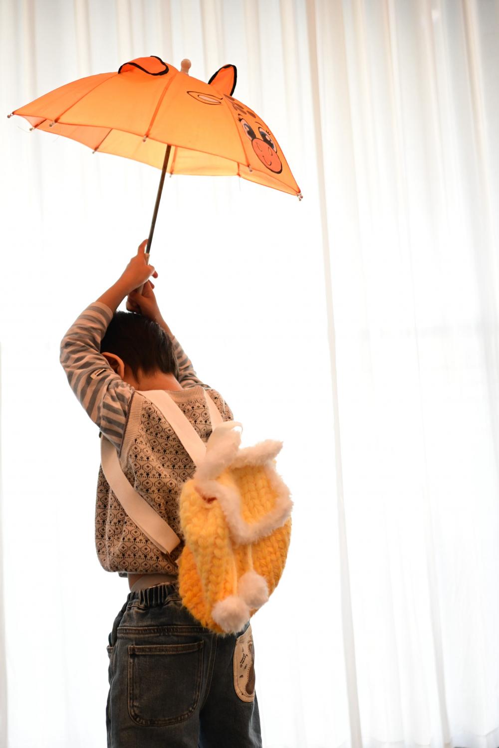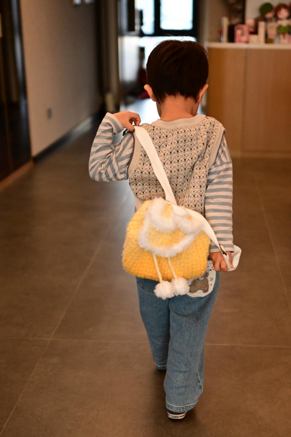 此时的家中,又回来一个小调皮,也要背上兔耳包,去郊游。