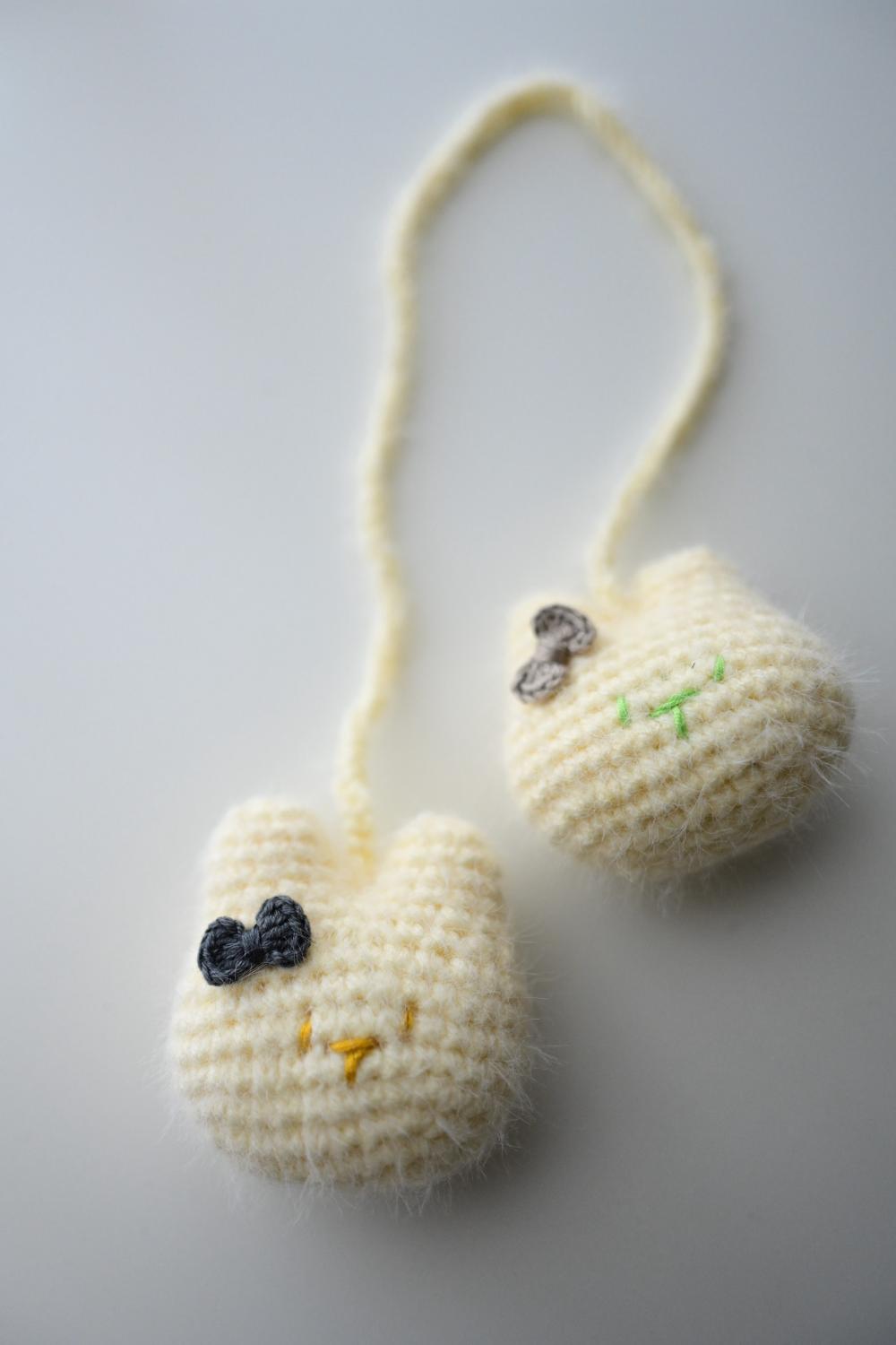 用剩下的梦羽线材,又钩了一对小兔子,拿在手上,也是丝丝滑滑的,手感很是良好。