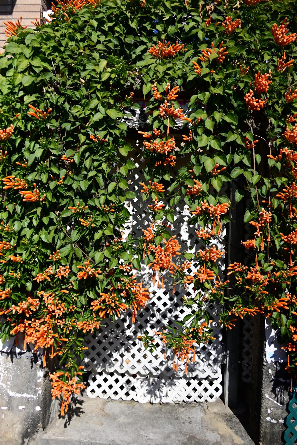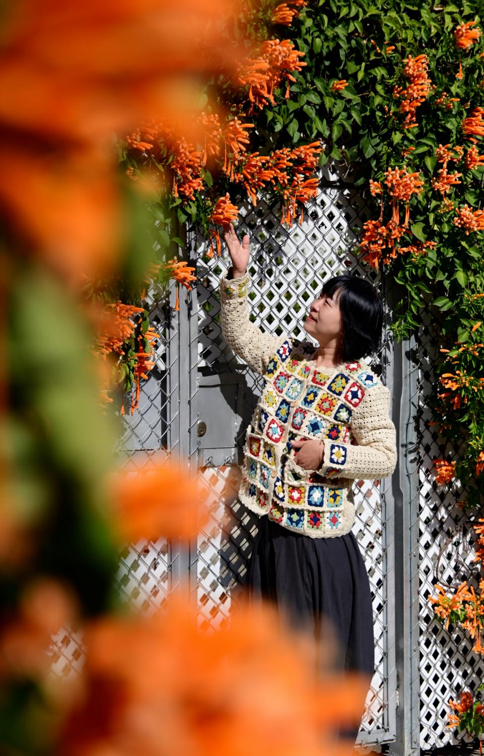 整个院落的外墙,爬满了盛开中的炮仗花。