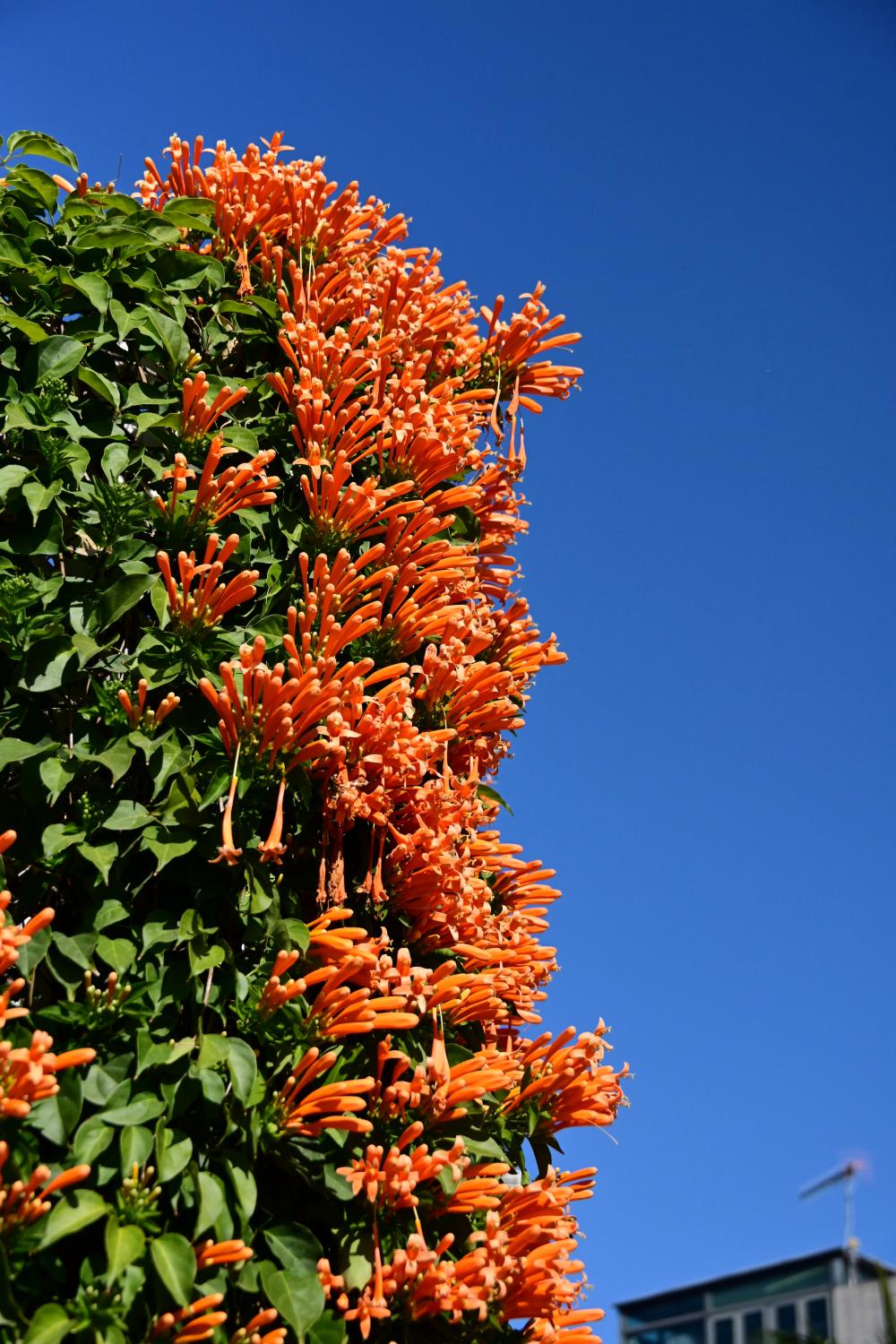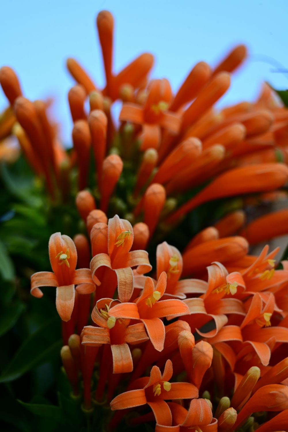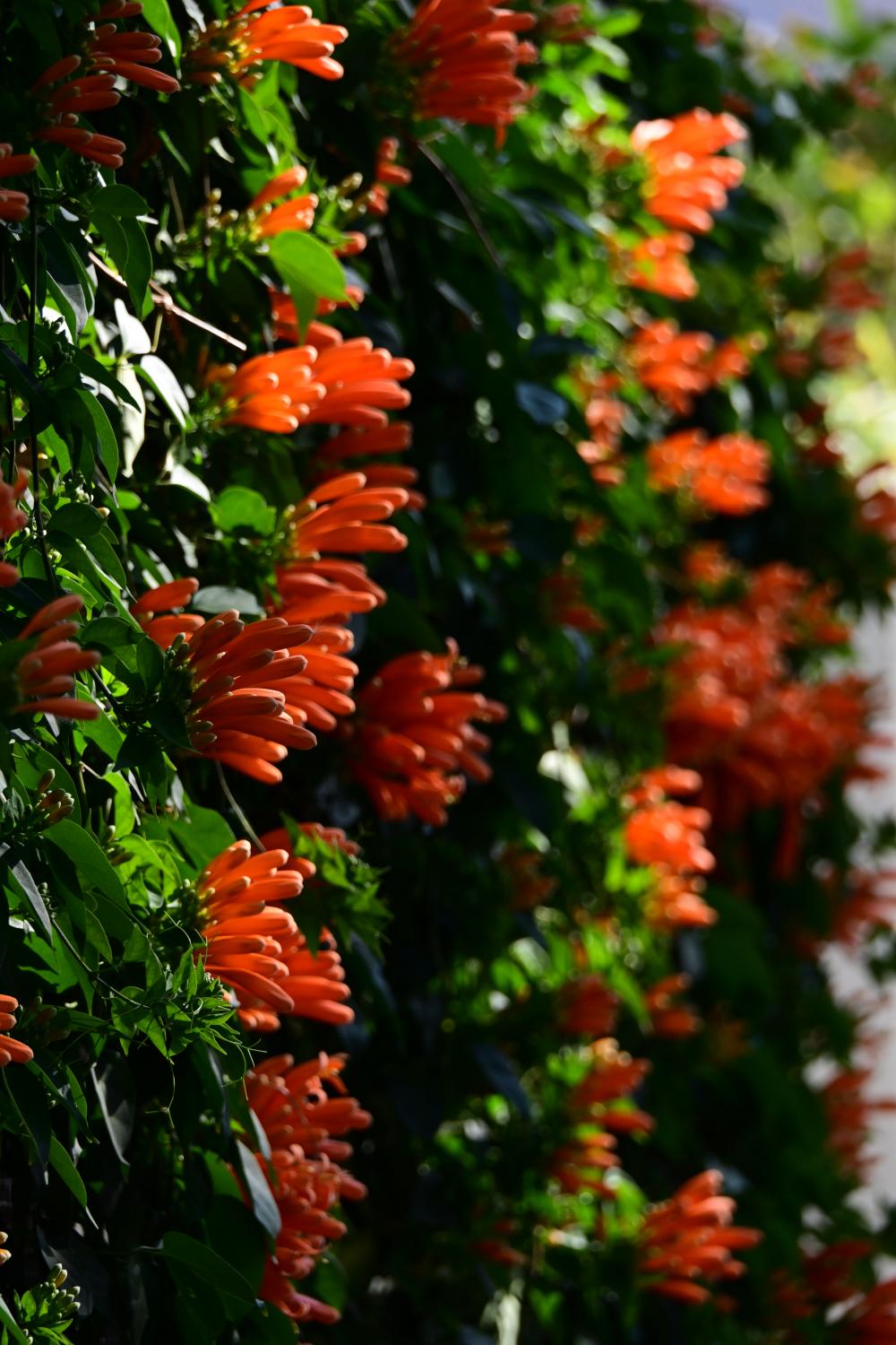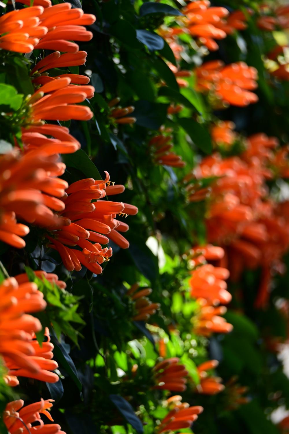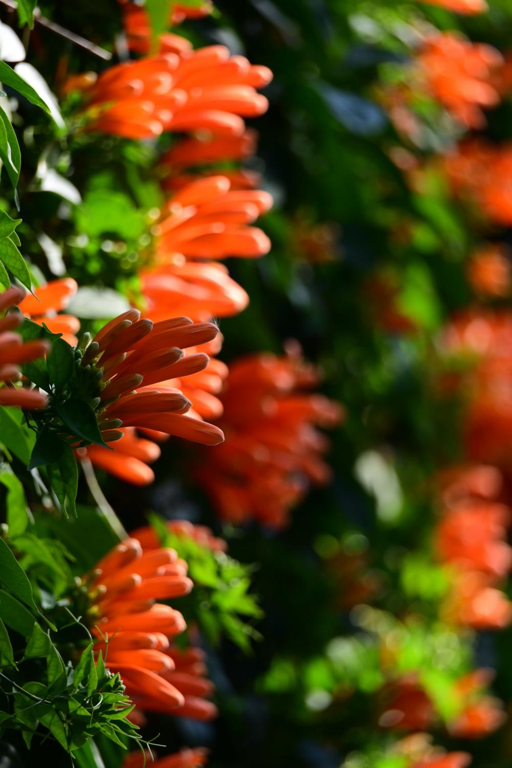 初放期的炮仗花,花朵尚未拆开,一簇簇挤在一起,追着光,很是美好。