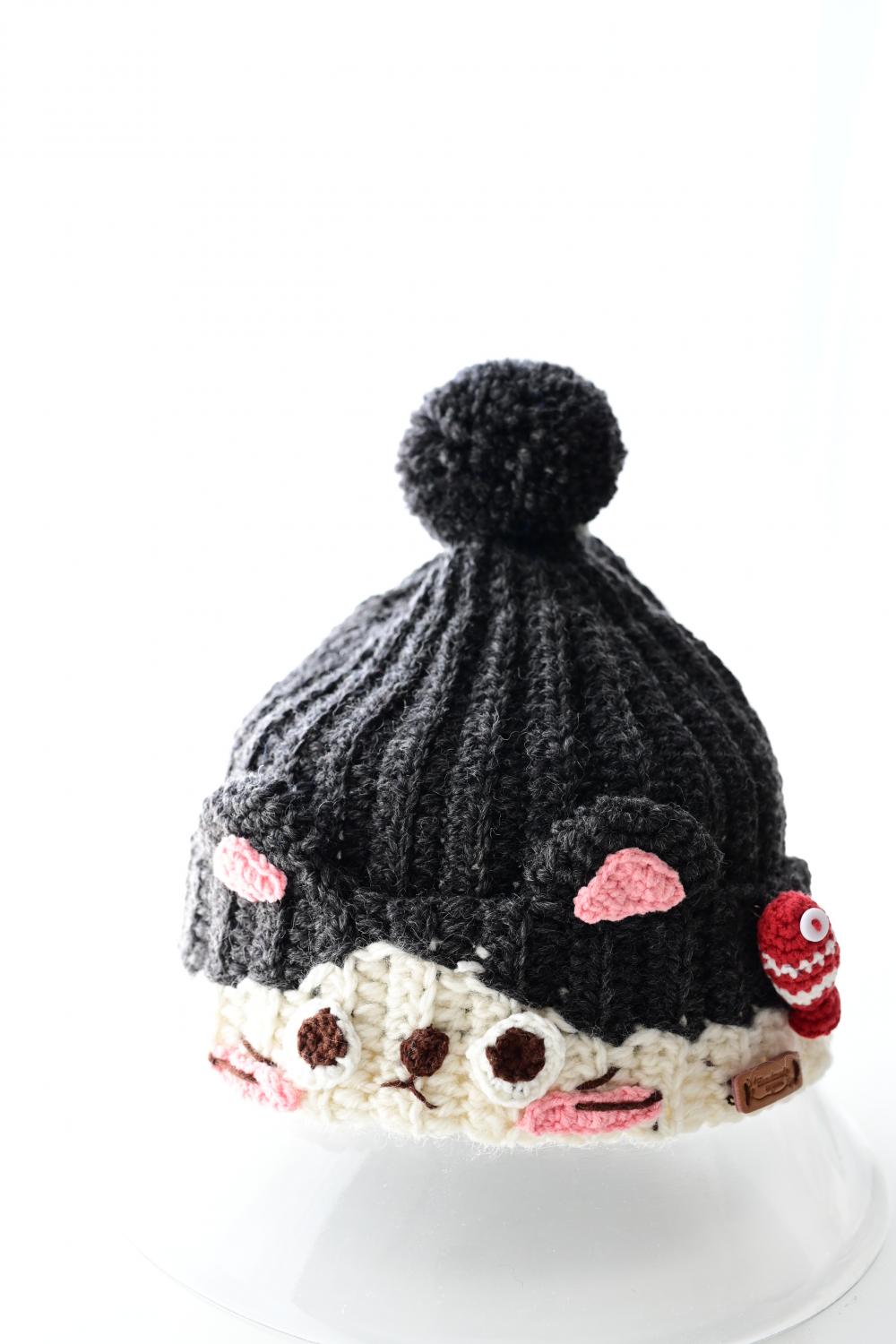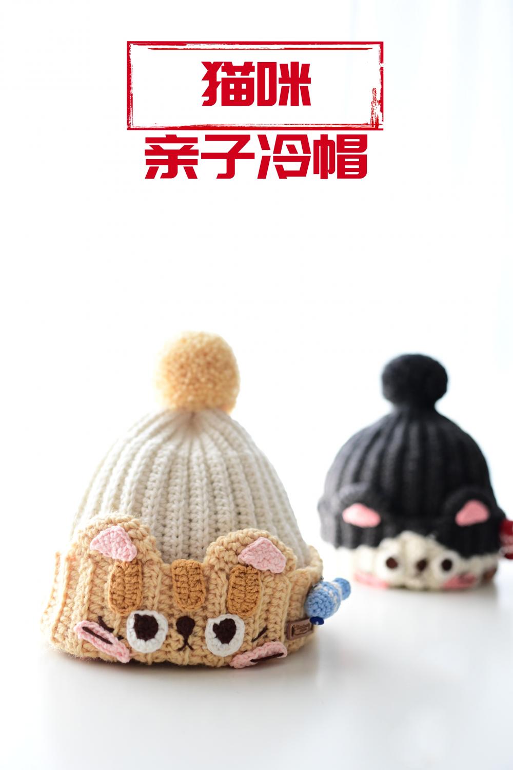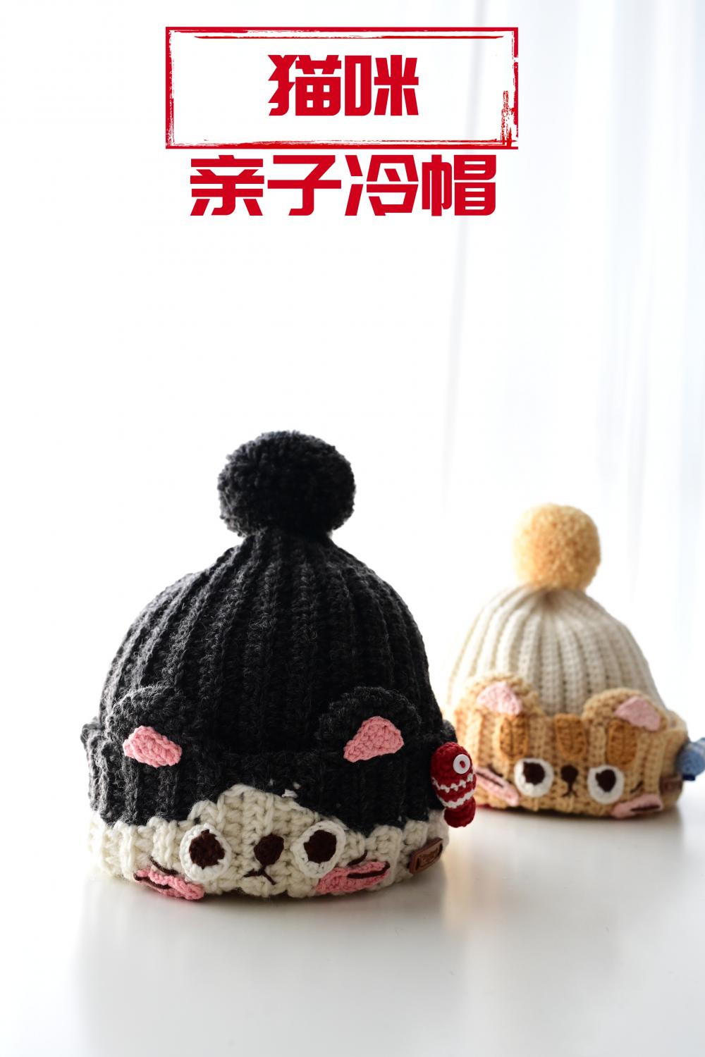 钩的,是帽子,亲子款的猫咪帽,其一是墨灰色。