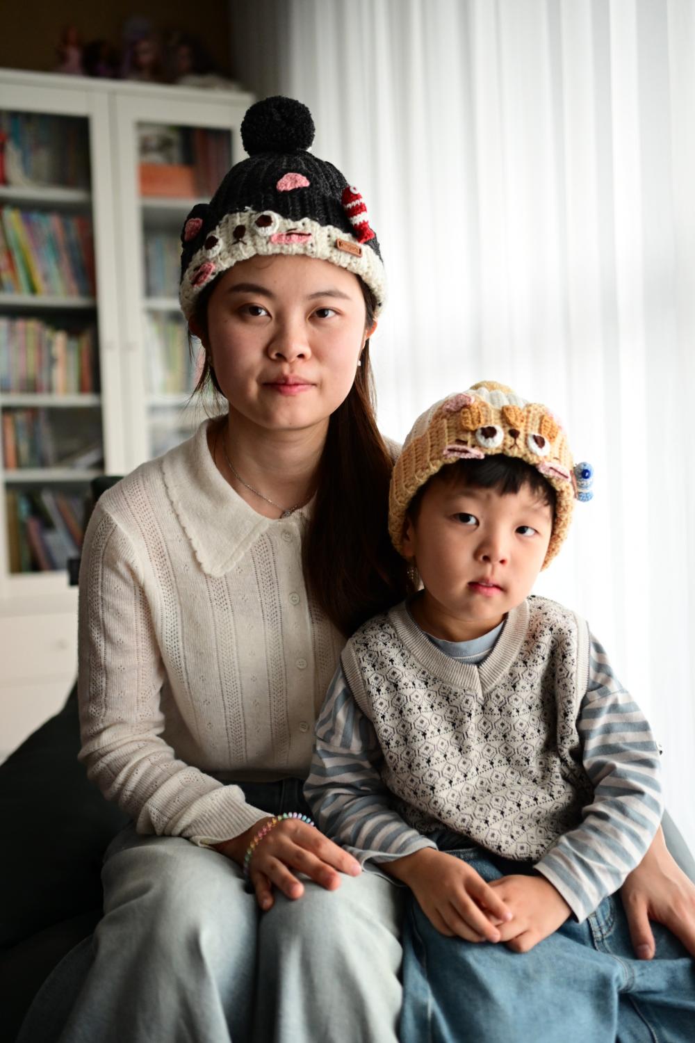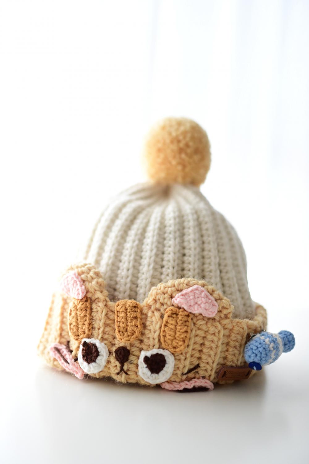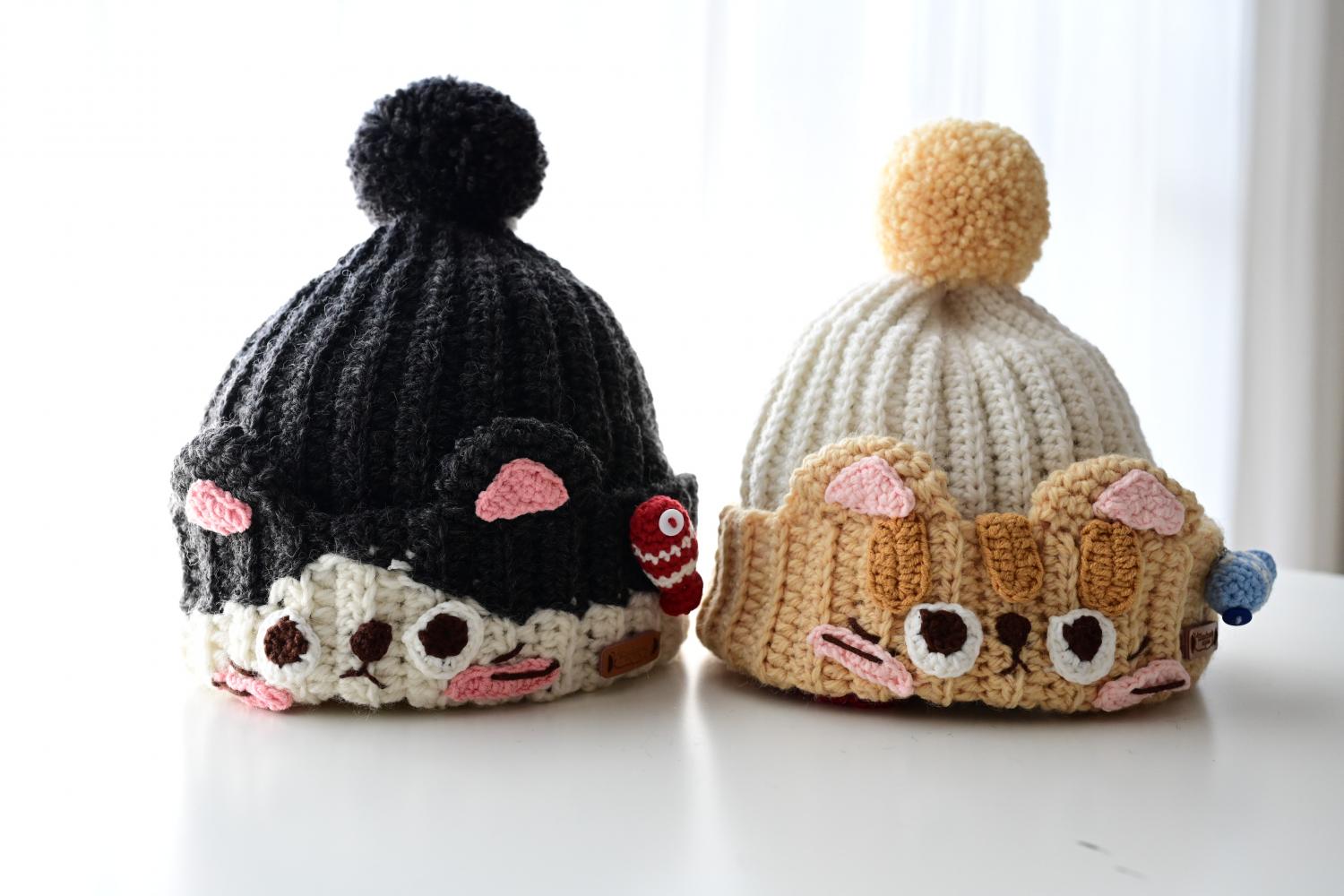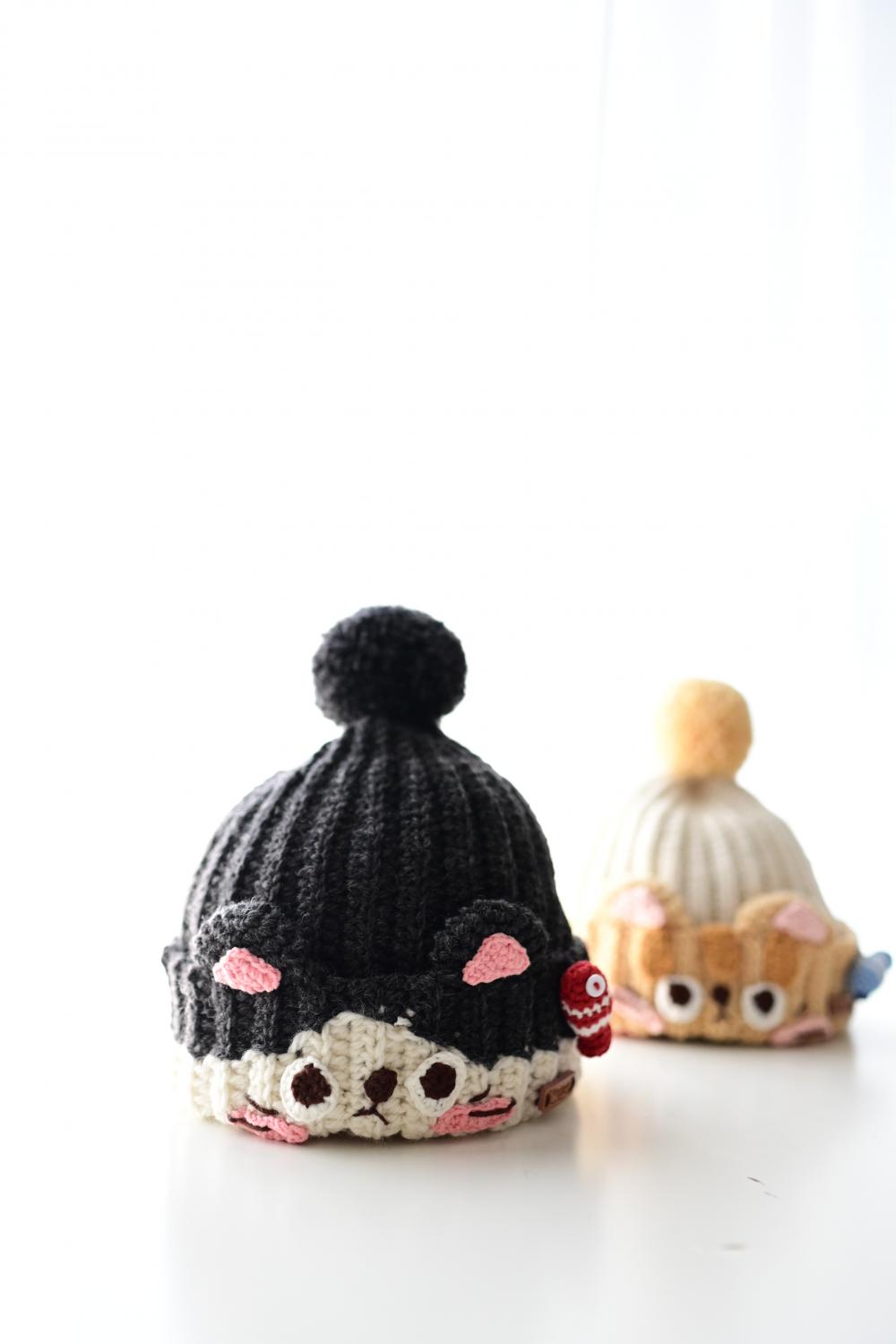 钩的,是帽子,亲子款的猫咪帽,其一是墨灰色。