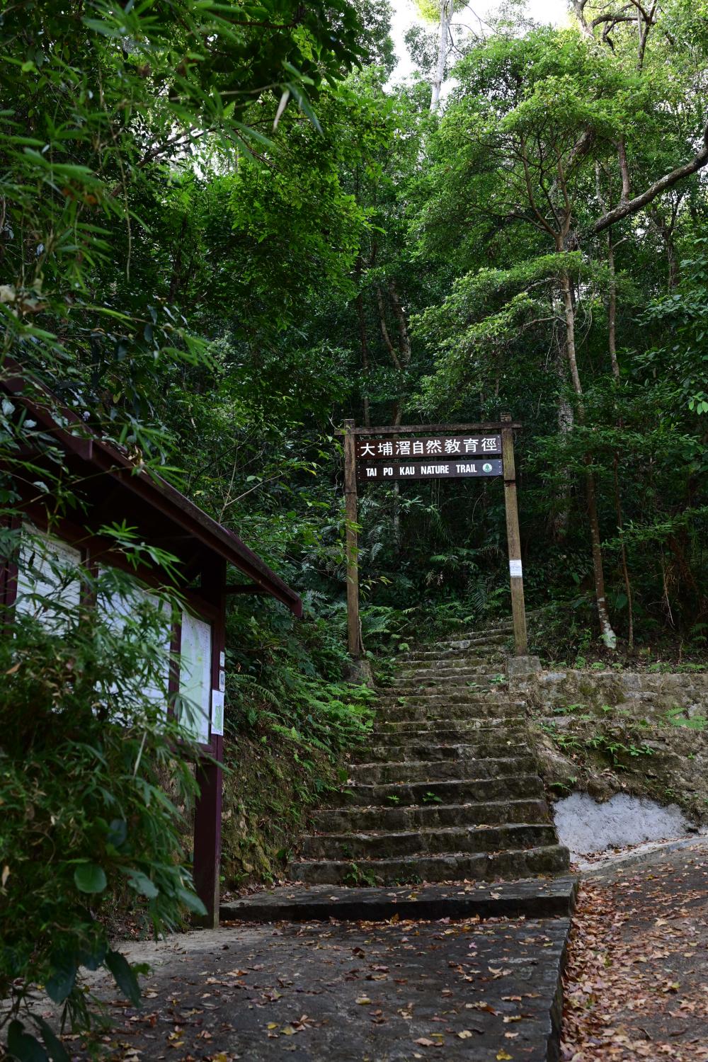 刚说到的自然教育径,入口就在左手边,名为大埔滘自然教育径,是大埔滘自然护理区内一条极具特色的小径,全长约0.7公里,有着不同层次的植物分布,还有珠颈斑鸠、白头鹎等雀鸟。
