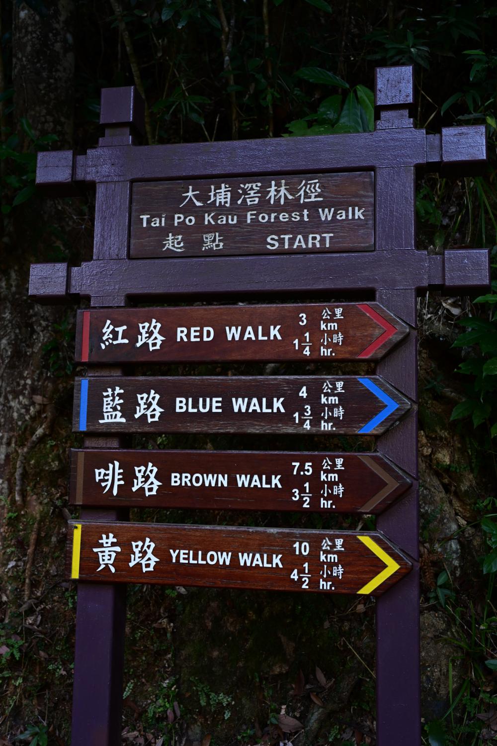 关于大博滘林径的几条路线,不时有图示帮忙解读。红、蓝、咖、黄,清清楚楚。