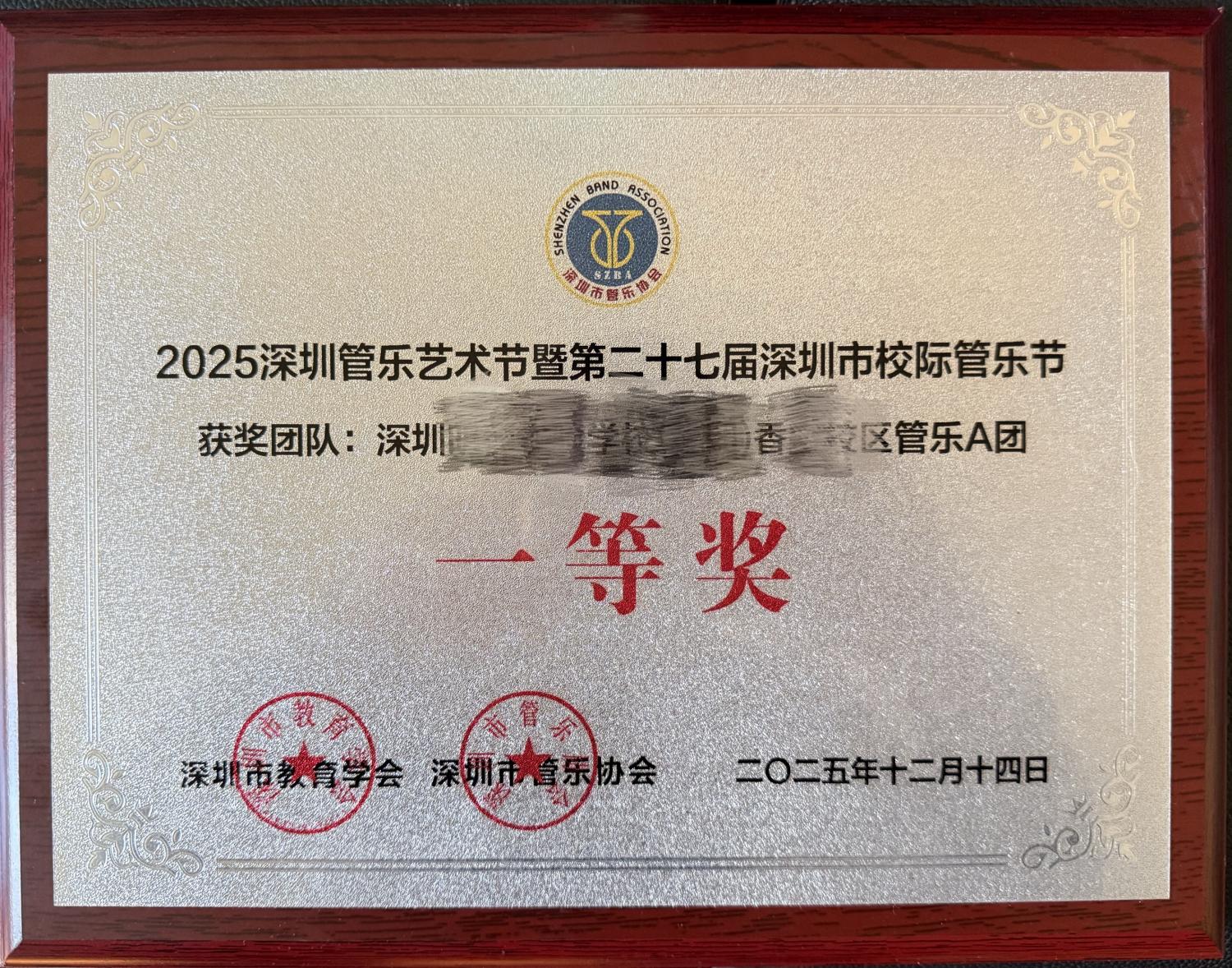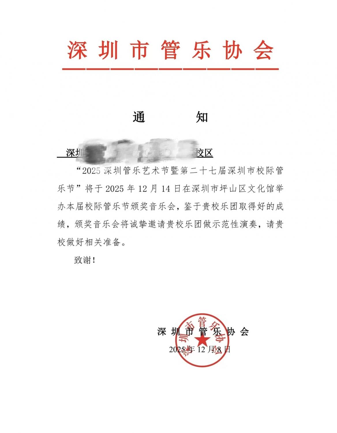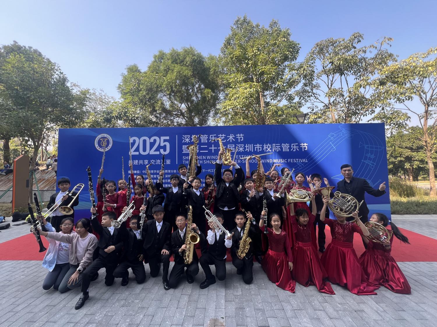 2025年12月6日,在深圳坪山文化馆,举办了2025深圳管乐艺术节暨第二十七届深圳市校际管乐节,学校乐团也前往参赛。