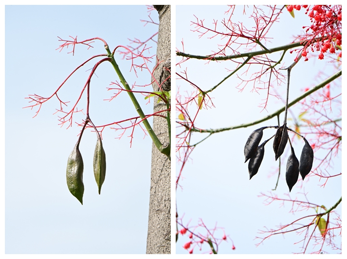 凤凰木的花是相熟的,未成熟的荚果却很陌生。