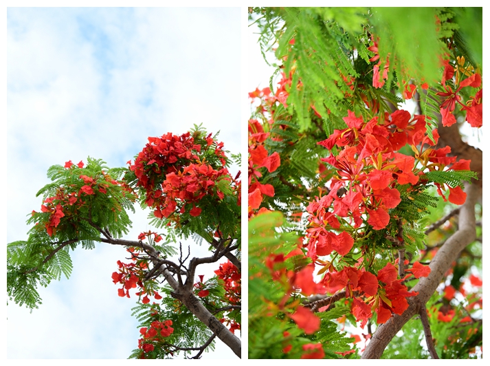 在熟悉的火焰木前,呆看了很久,因为新鲜,好奇这些新鲜。