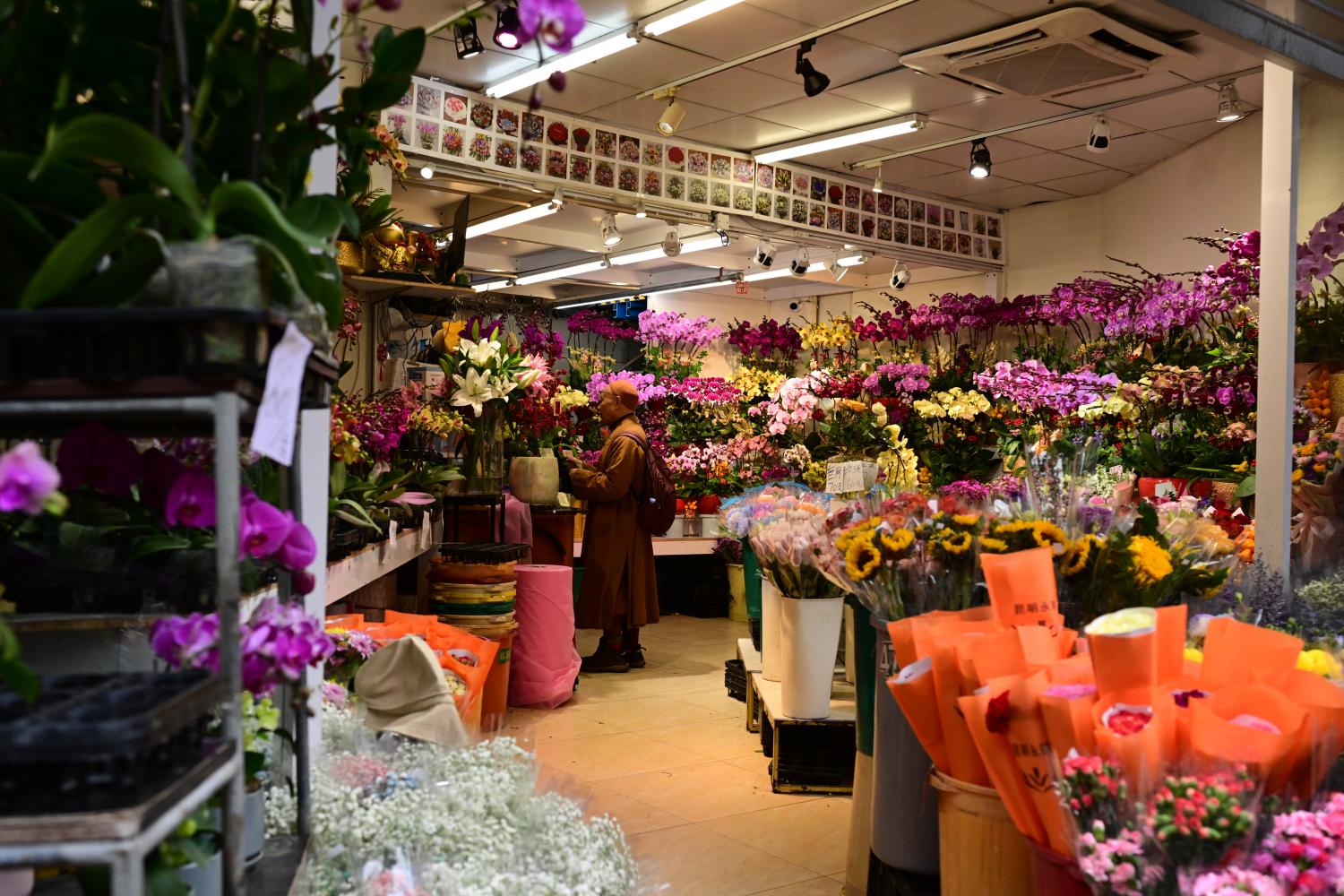 沿街走,没想到花市的规模有那么大,店铺一家紧挨着一家。