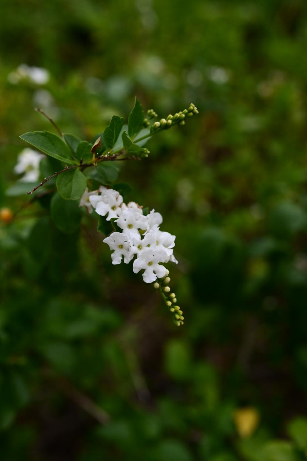经过白色的假连翘,停下来拍。