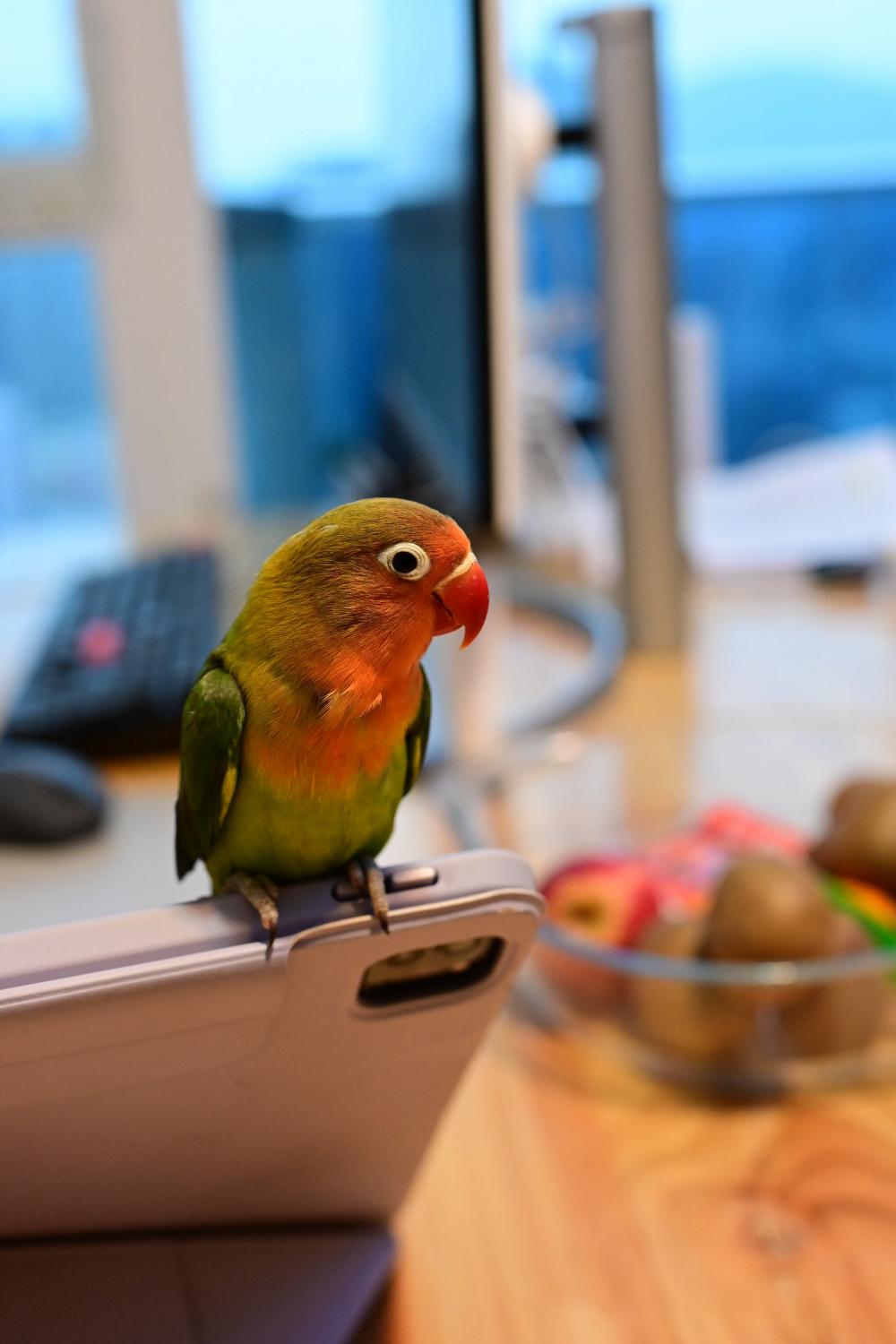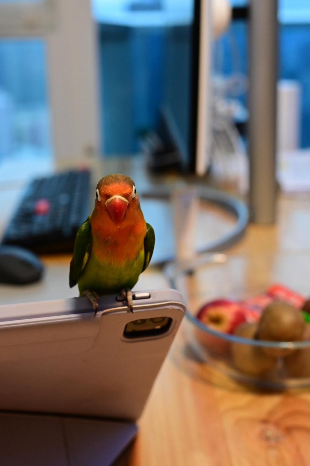鹦鹉被从盒子里释放出来的第一时间,落到了Ipad上,原来这还是一只喜欢电子产口的鹦鹉。