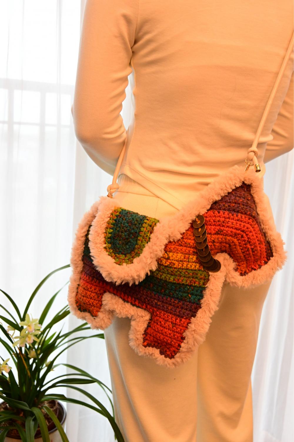一款立体小马轮廓的包,有着毛茸茸的包边,自带圆滚滚的萌感,且软糯亲肤。侧边装饰有叠叠金币,直接戳中“马上有钱”的谐音好寓意,讨喜又吸睛,绝对的。