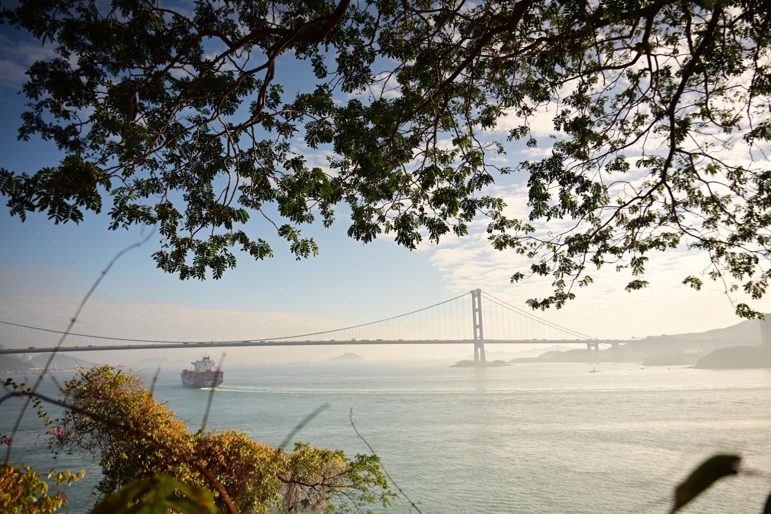 也可以望向远方,一边是青马大桥,一边是汀九桥,海美湾沙滩的位置可谓独特,确实难得。