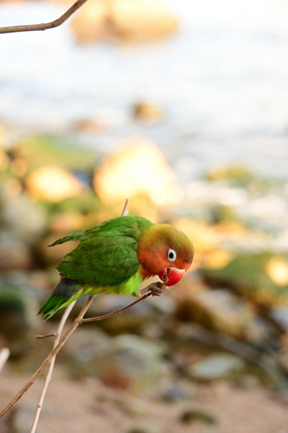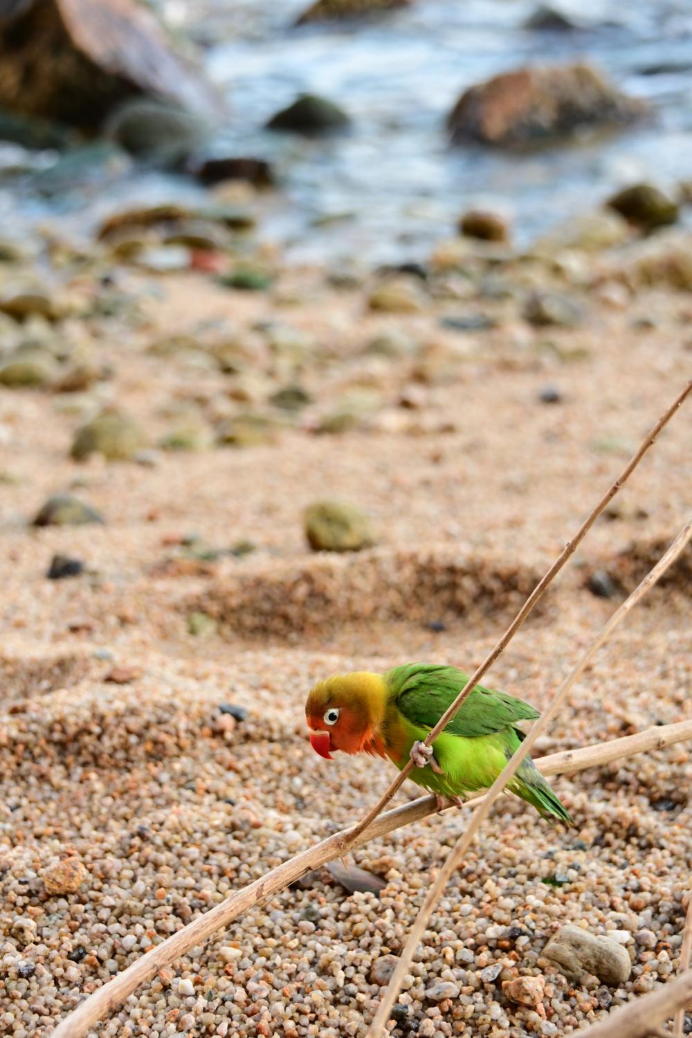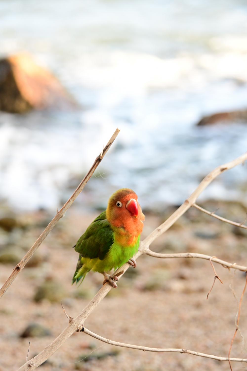 捡一段枯枝,立在沙滩上,鸟见了,自然会爬上去。