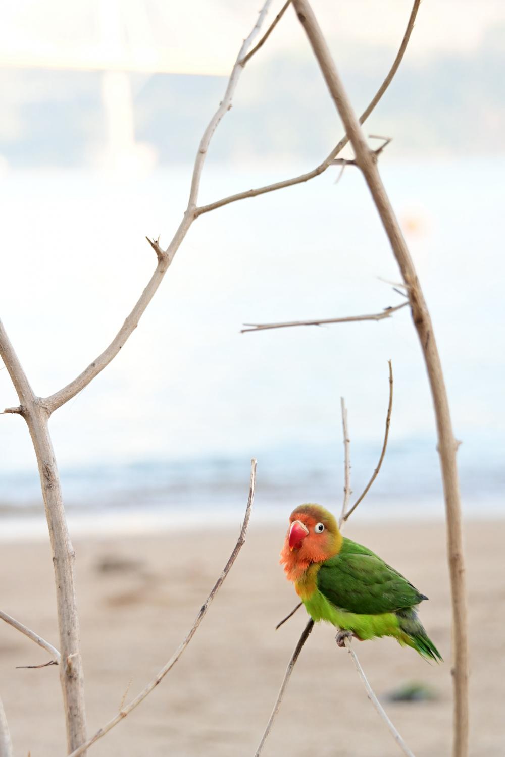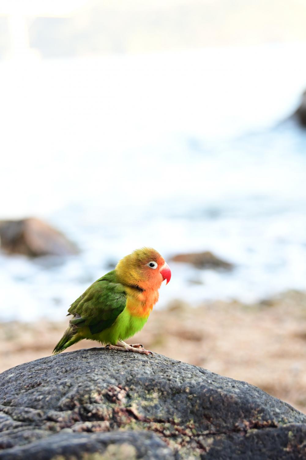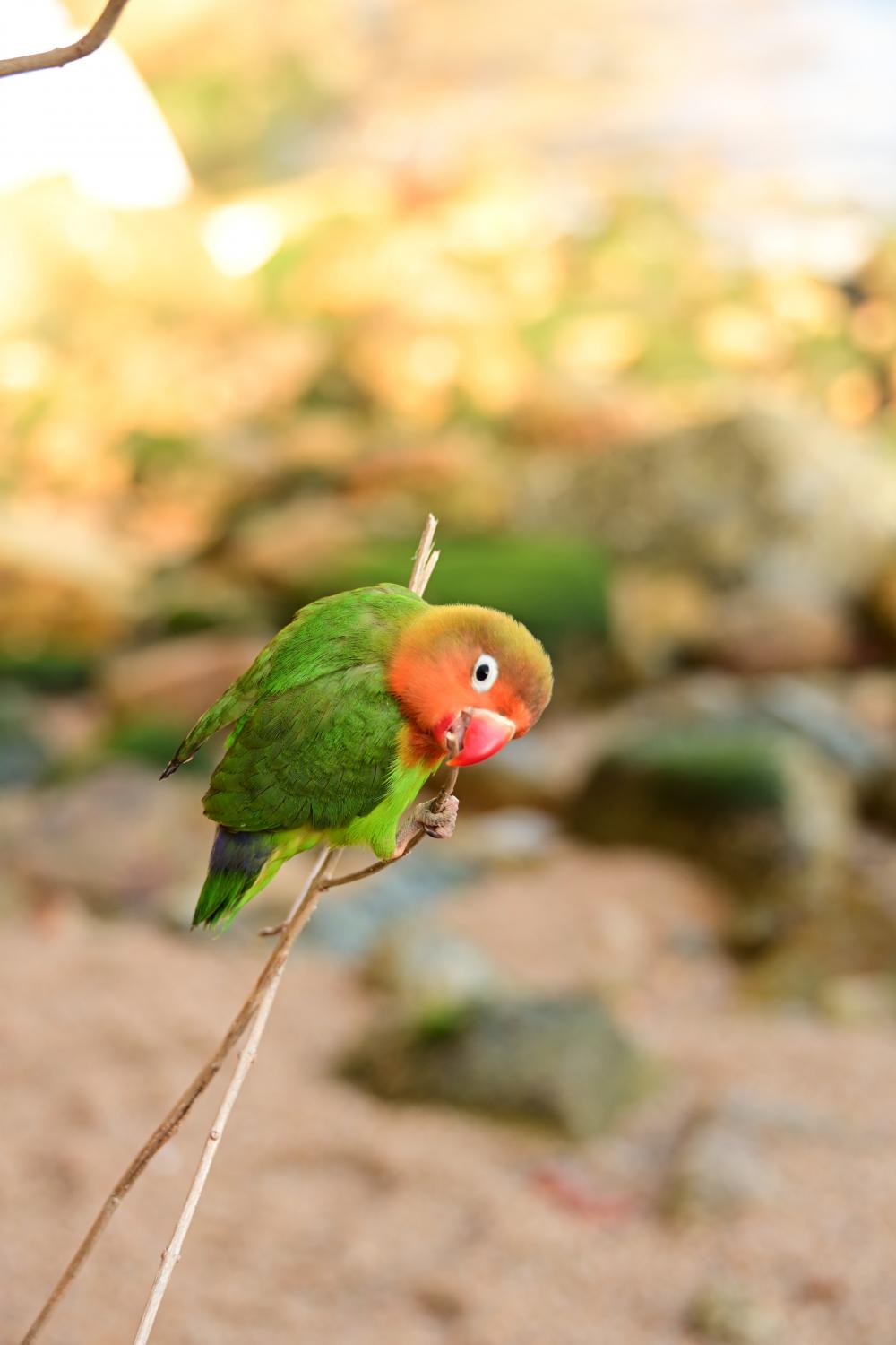 捡一段枯枝,立在沙滩上,鸟见了,自然会爬上去。