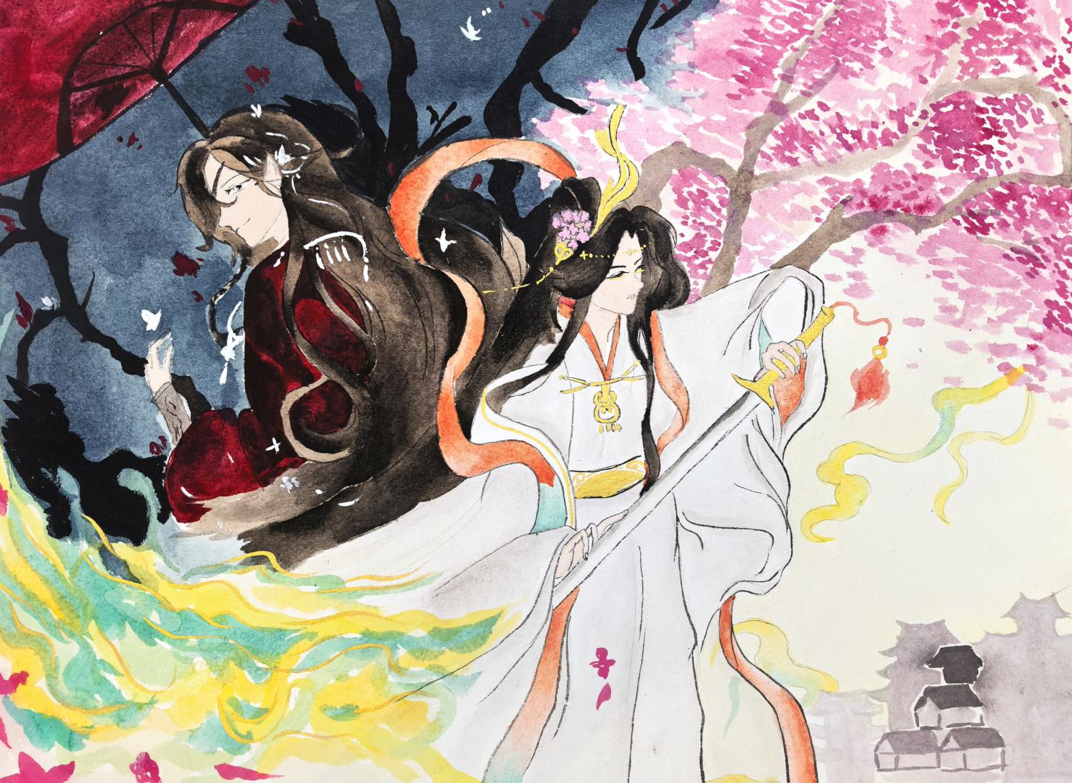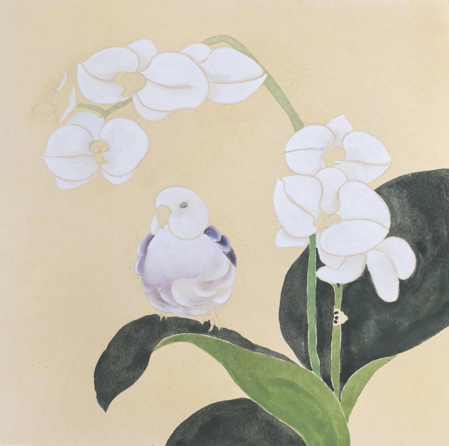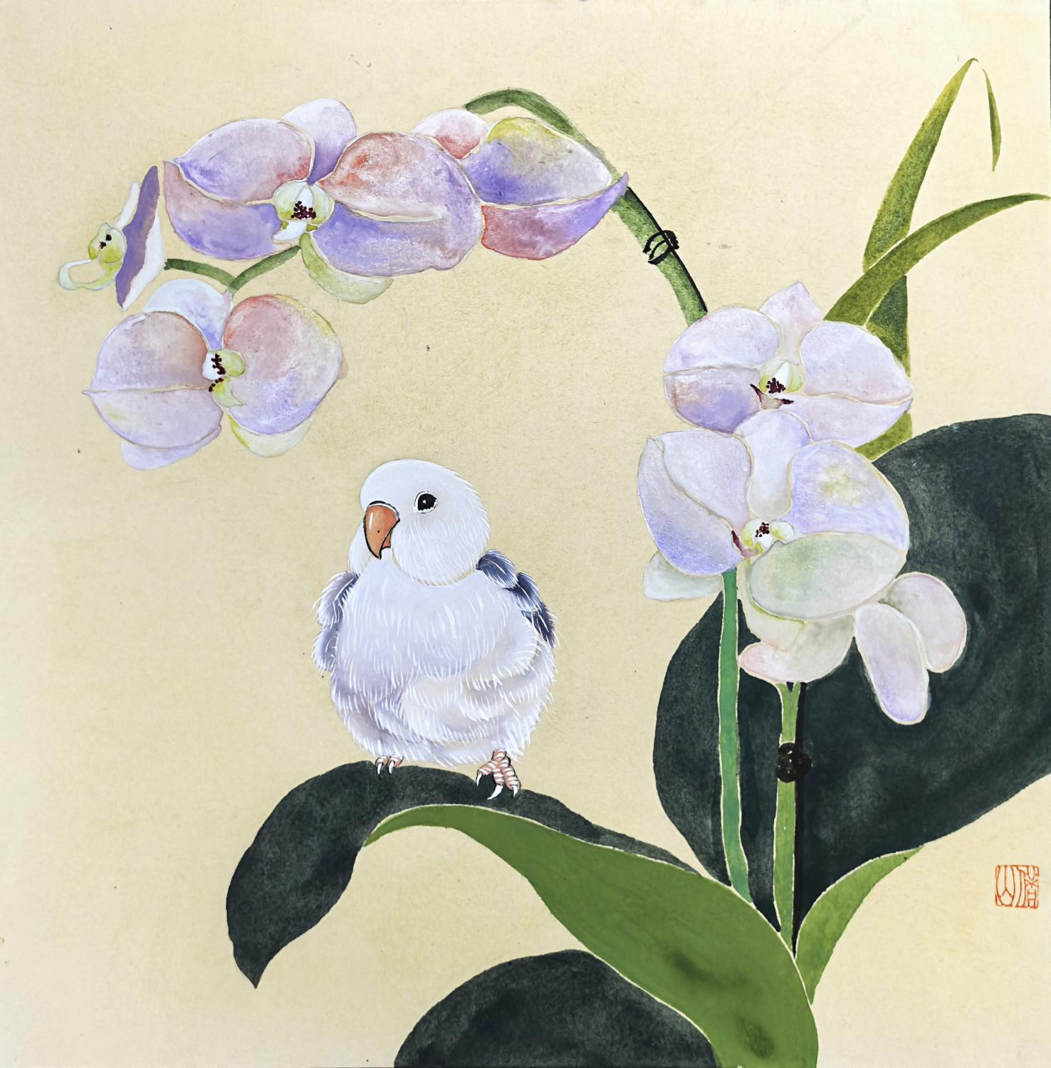 于是用一个小时的时间,完成一幅新作,顺带着也把原画馆的作品递交参赛,就是些篇开篇的那幅,绣球与鹦鹉。