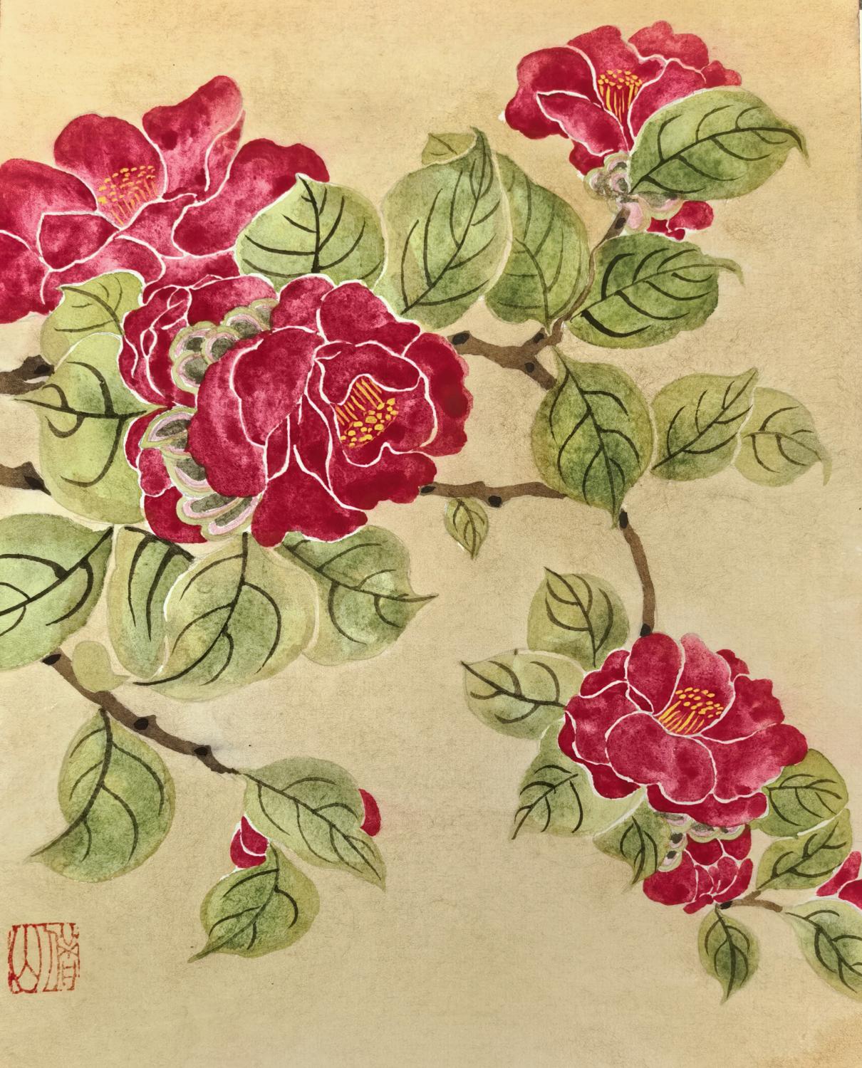 今天效率很高三个小时把这张画画完喽,整个花的颜色是很温润的曙红,用没骨的方法来画看起来整体色调既鲜艳又不刺眼,看起来很舒服。花枝从左上延伸到右下,舒展的恰到好处春日的氛围感很强哦。