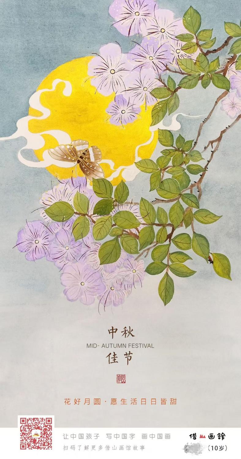 这幅作品,被画馆老师用做了中秋节海报,确实挺应景的。