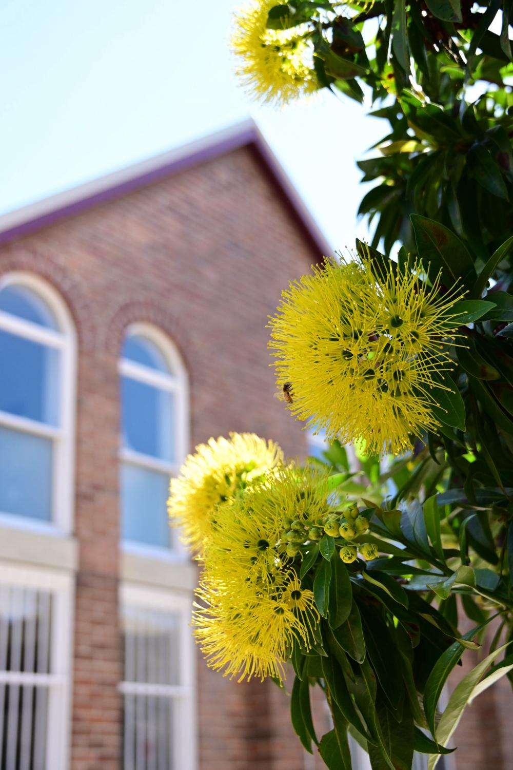 背景中的建筑,让花树显得没那么单一。