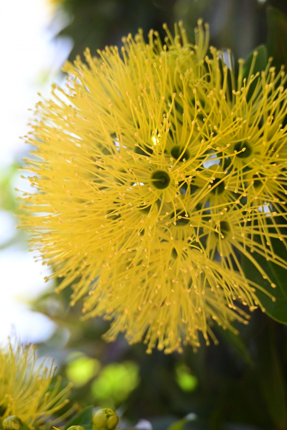 因花瓣退化,大量金黄色的长花丝,聚集成球状花序,远看像一团团金色绒球,正是 “黄金熊猫” 这一别名的由来。