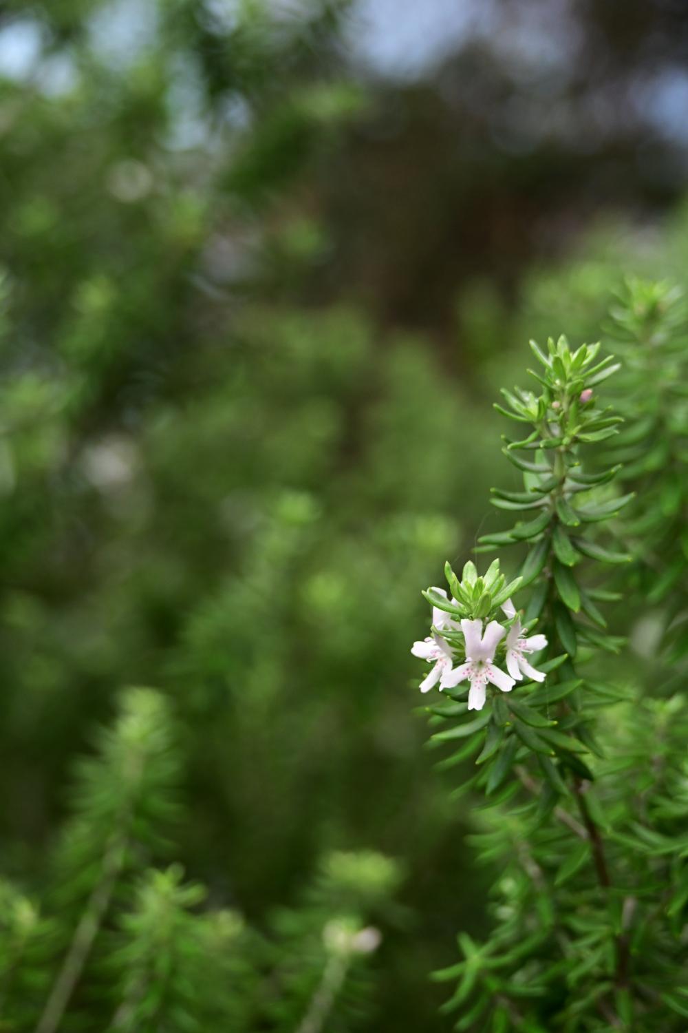 澳洲迭迭香的花朵很小个,花瓣白色,透着淡淡的紫,花瓣上带有斑点。