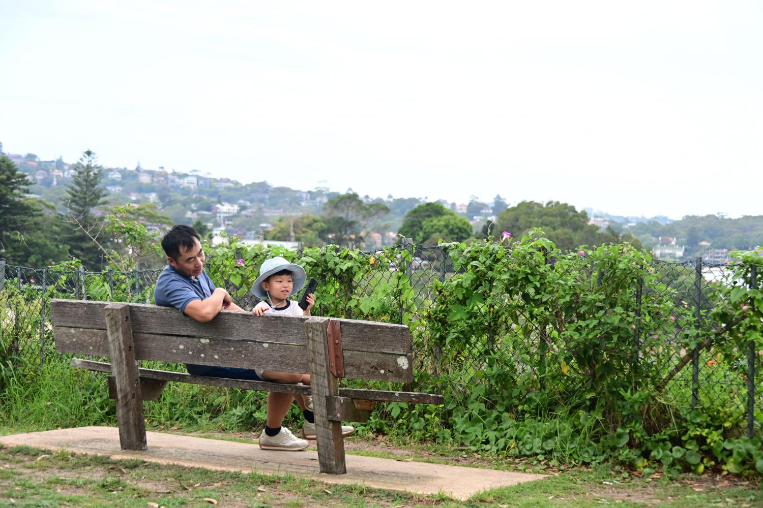 没裤子穿的小孩,只能被迫离开海滩,改为行走步道,边走边看别人玩。
