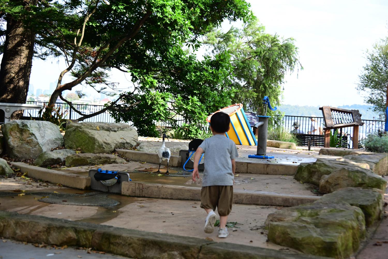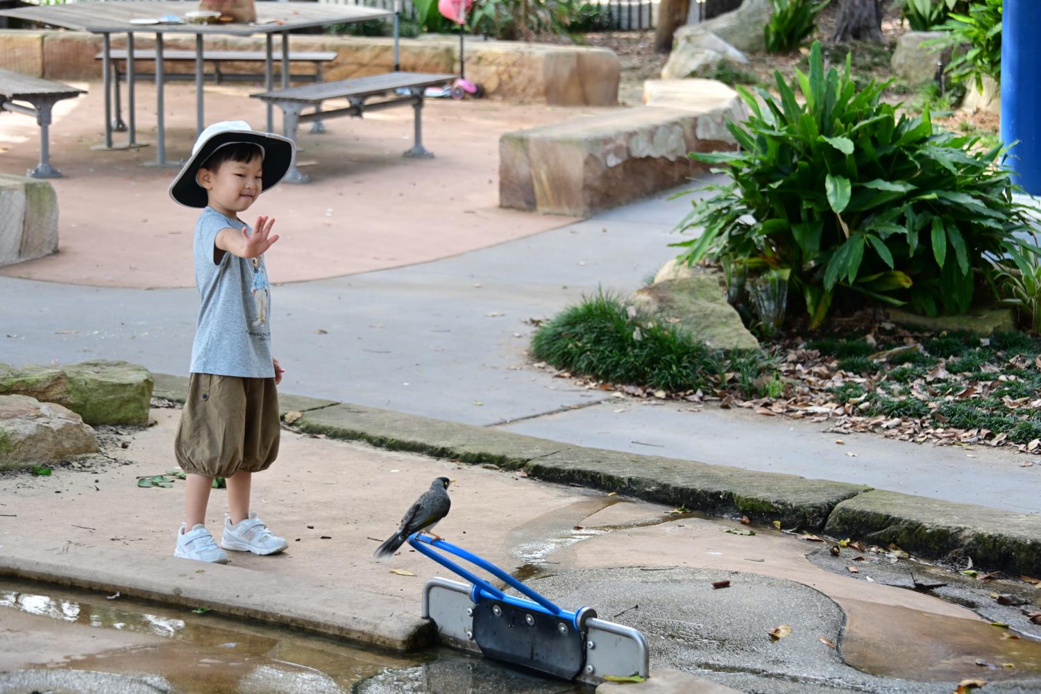 垃圾鸟也晃过来了,但遇到孙儿这个小顽皮,只能让路。