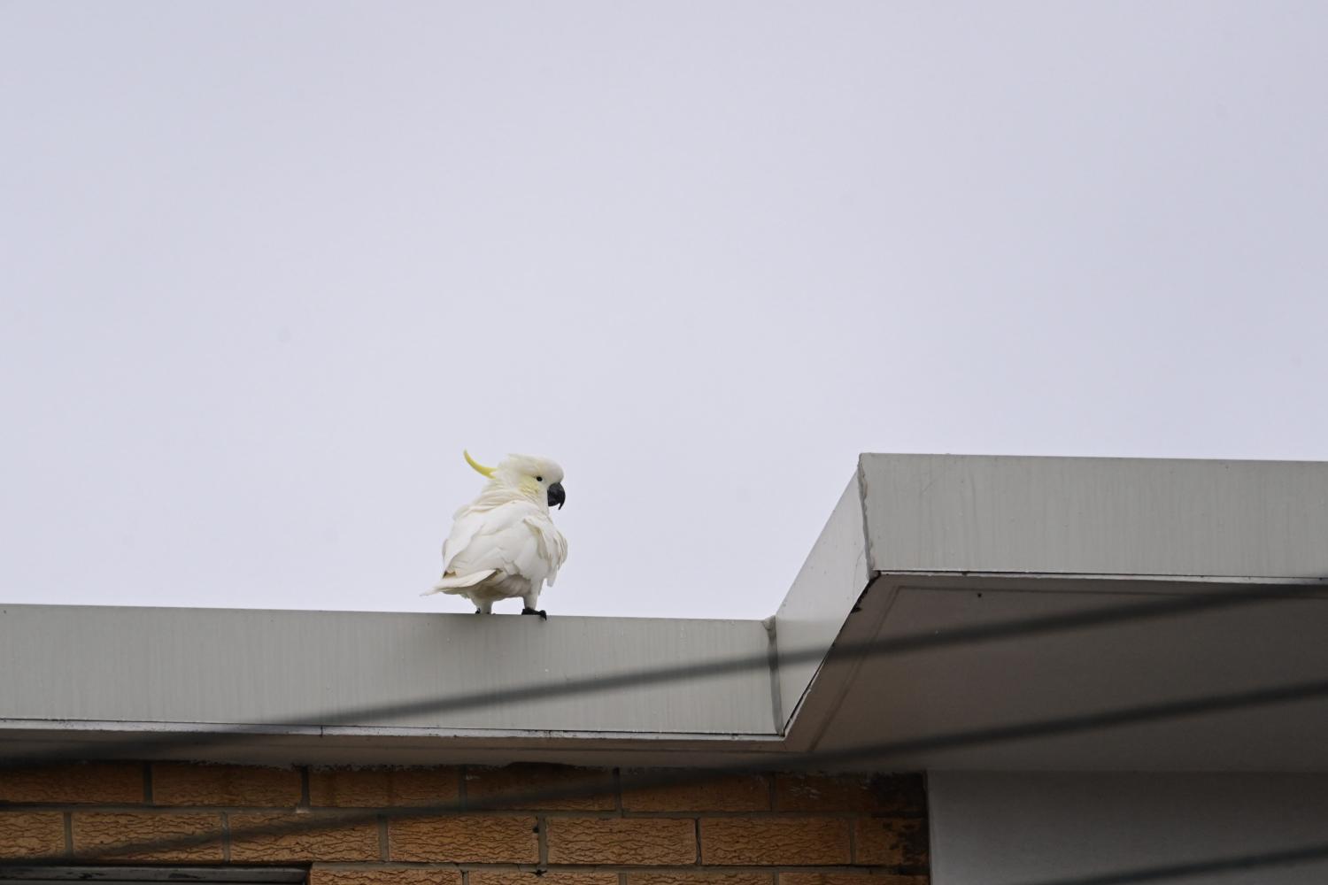 野生的鹦鹉,落在街对面的房顶上,且不止一只两只。