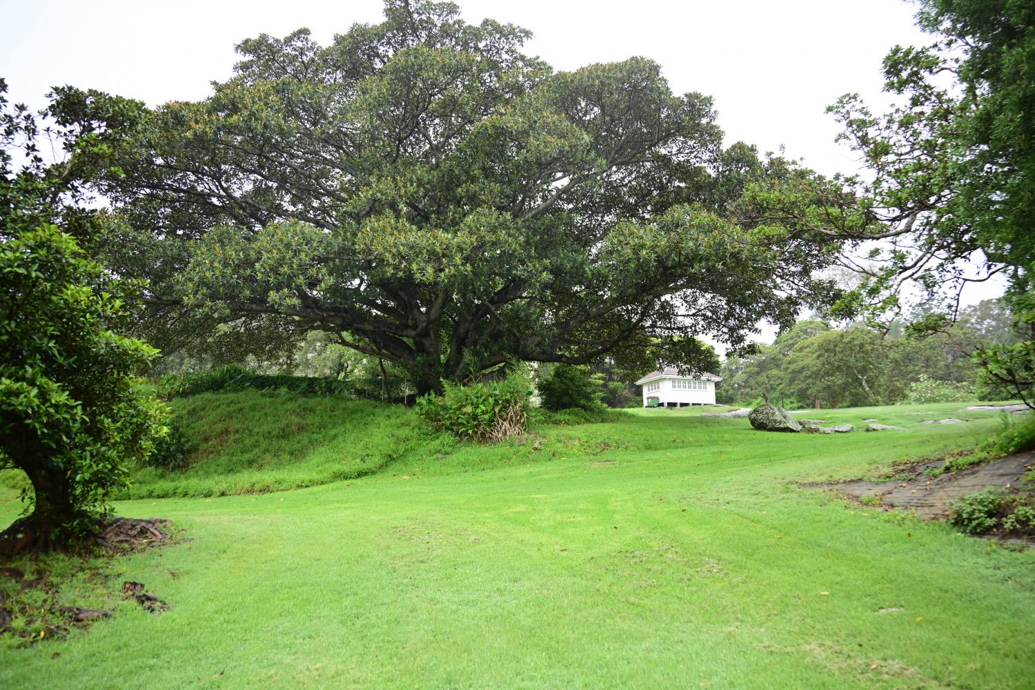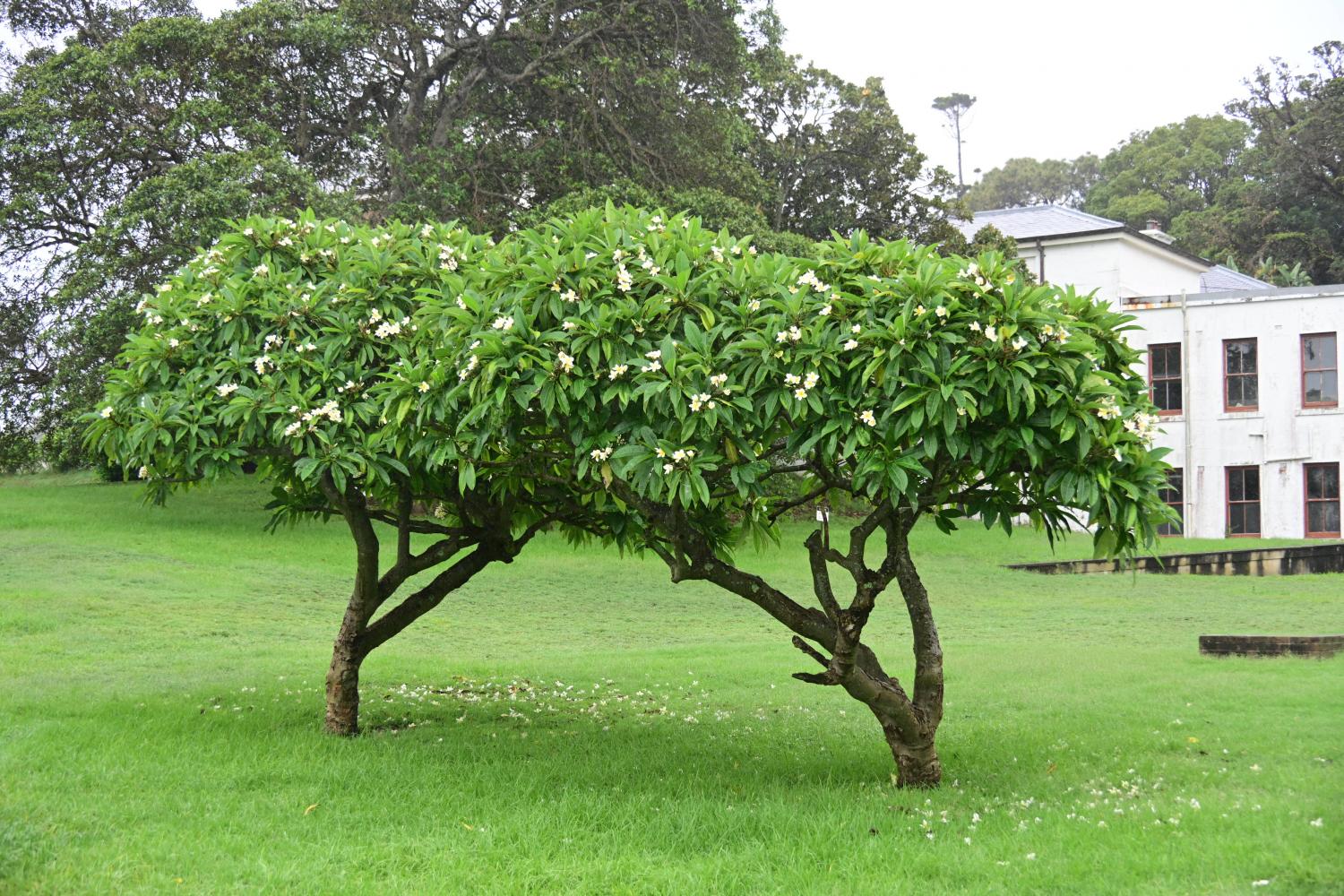 两棵鸡蛋树并肩,树冠相互交织,镜头拍不出树身的巨大。