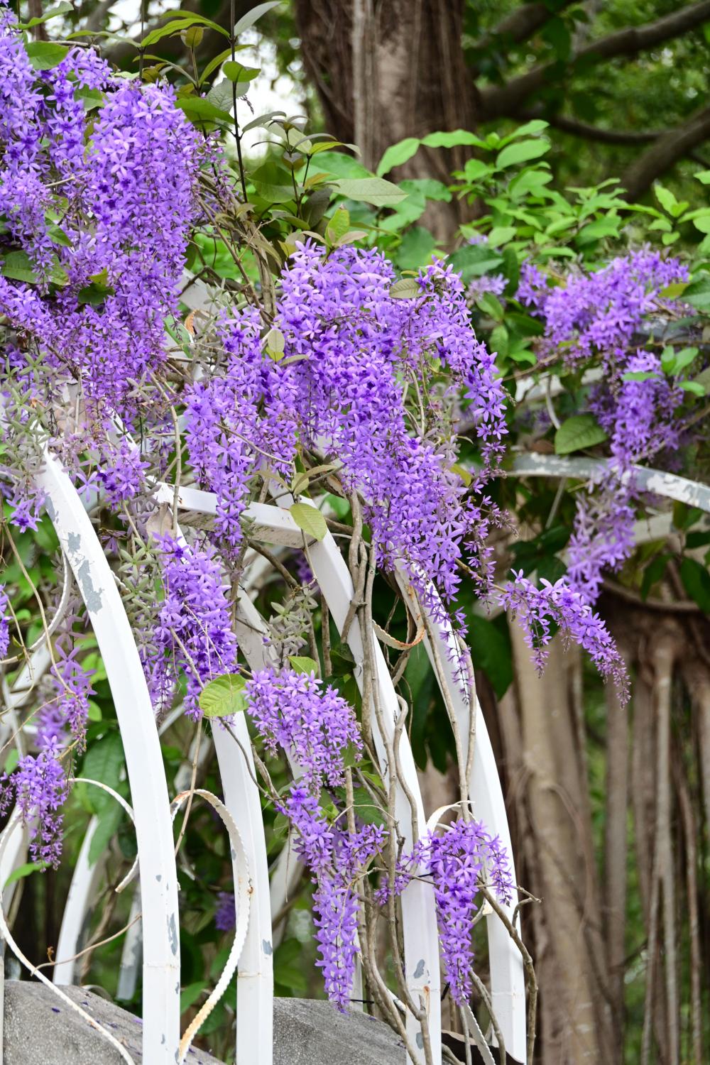 万紫千红的春天,蓝花藤的花影,不可或缺。