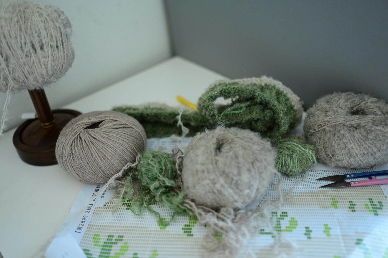 一棵仙人掌,用的是深浅两种驼颜线材,但圈圈纱是同一种,近看效果不明显,要远看,才有那种意境。
