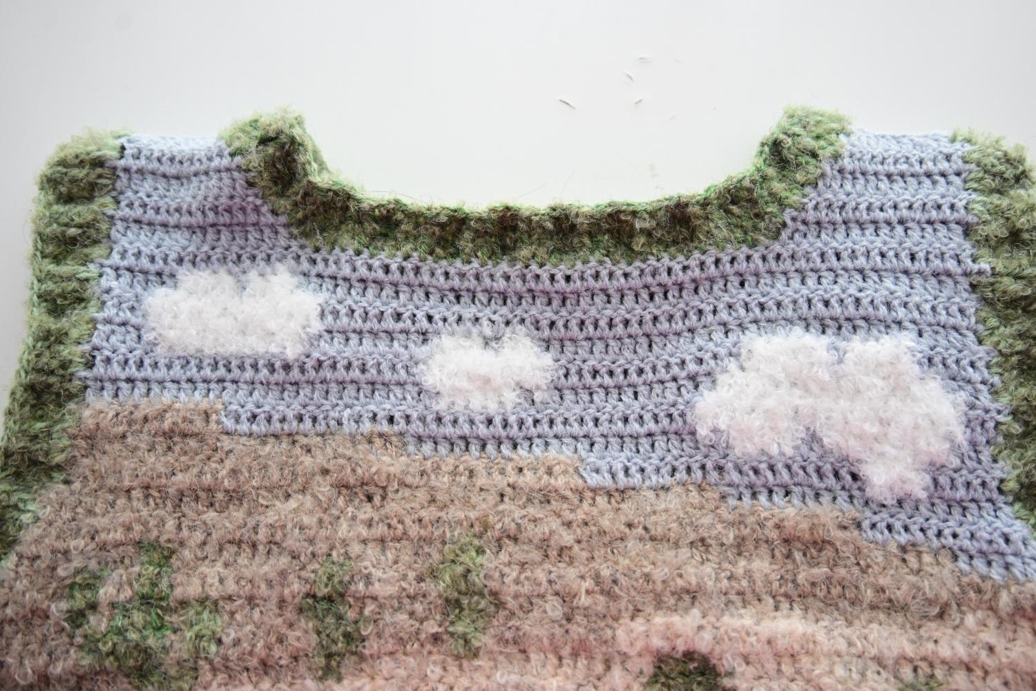 很喜欢肩部的配色,还有用两股白色圈圈纱完成的云朵,很立体飘逸。