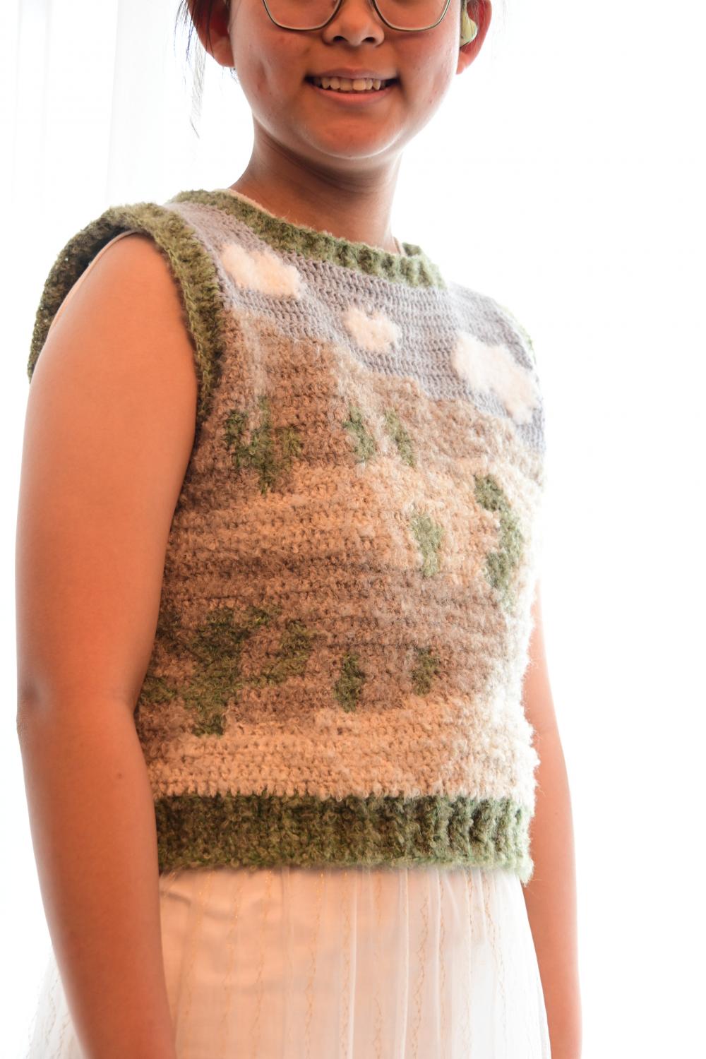 不管是哪面的设计,都是在借仙人掌与夏日意象,唤起童年海边、外婆陪伴的温暖回忆,让这件手工衣物承载起情感的温度。