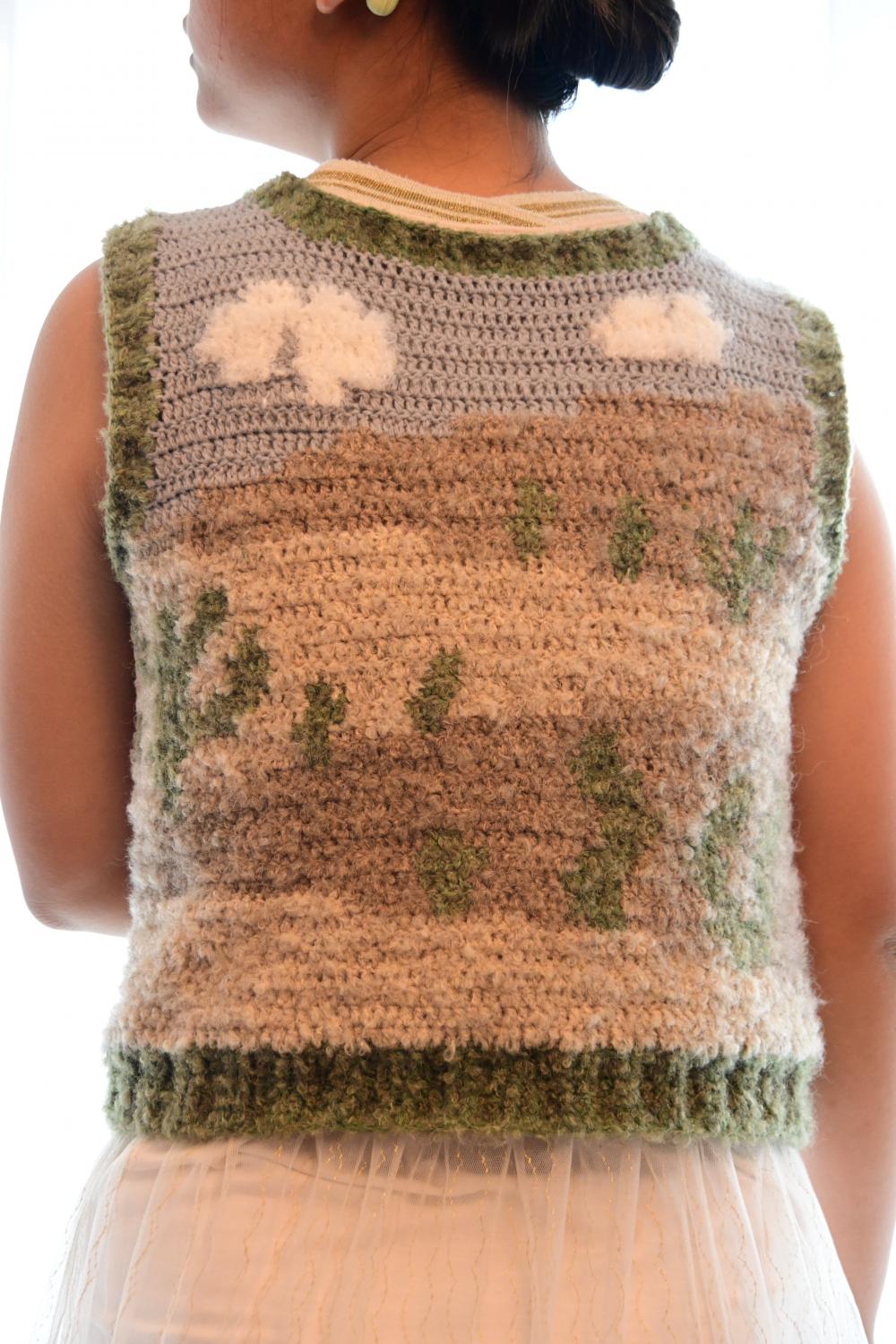 忆夏知秋马甲,是一个系列,设计有三个款,分别是海浪、仙人掌和田野。海浪和仙人掌属于忆夏篇,而田野款则属于知秋篇。