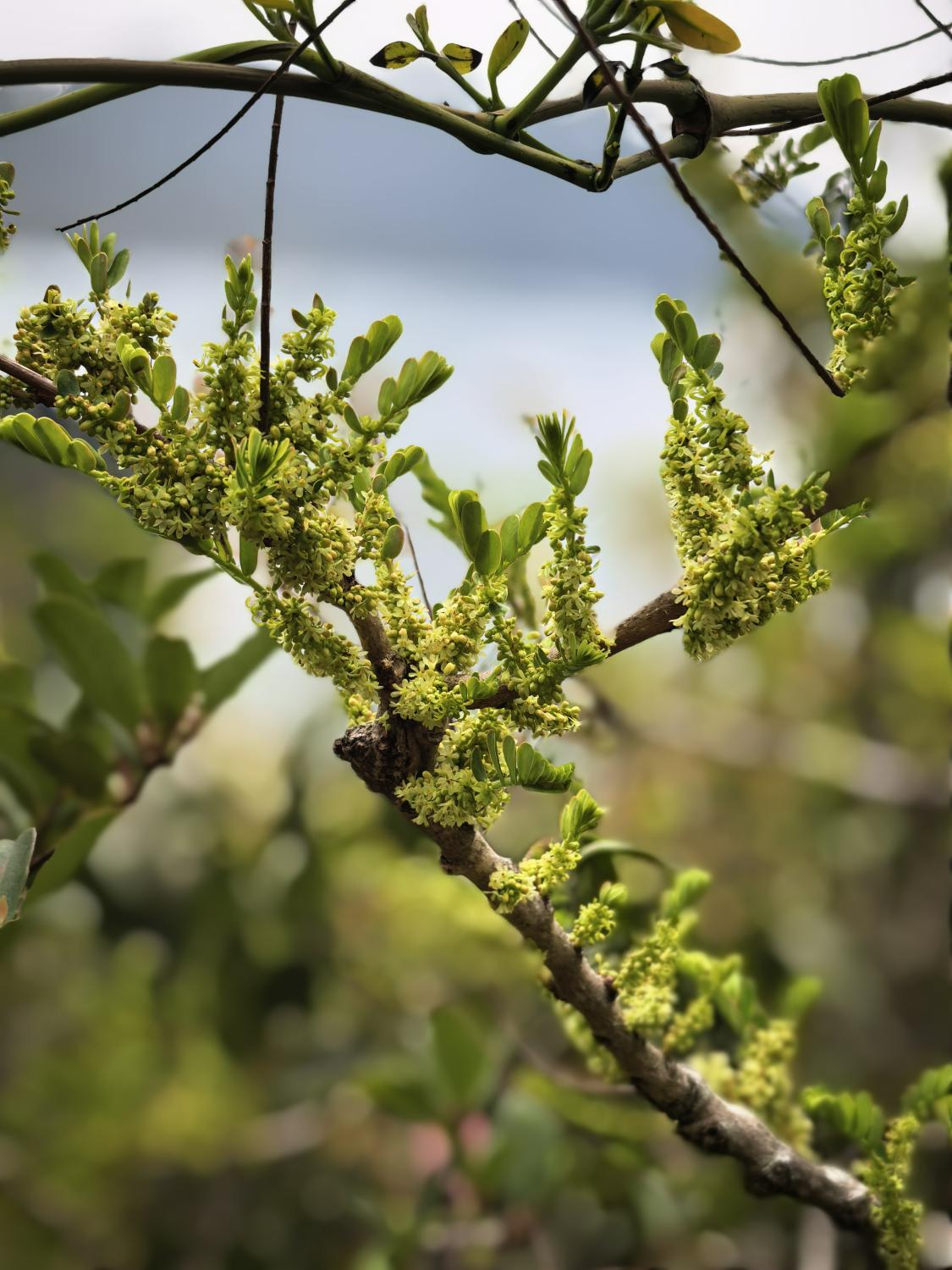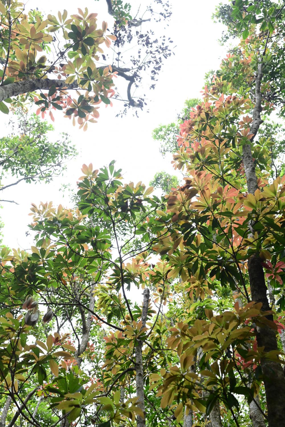 三月,是木荷萌发新叶的季节,新生的叶片呈醒目的橙红色、铜红色,之后会逐渐过渡为深绿色。