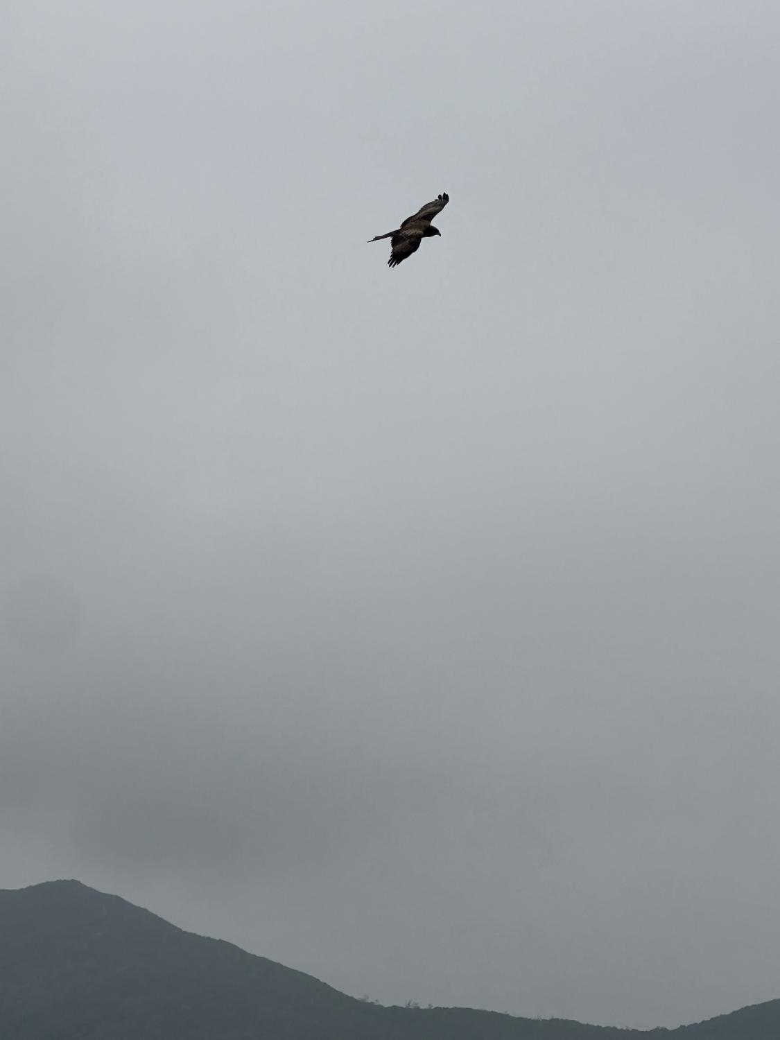 天上有飞鸟盘旋,某人用手机抓的图,也算是勇猛了。