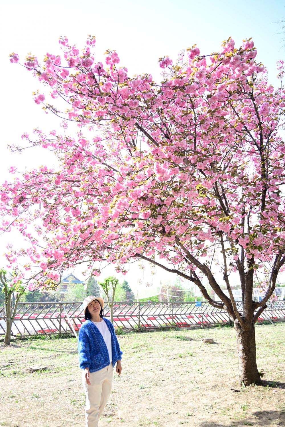 有一树晚樱,树型相对高大,花开得极盛。