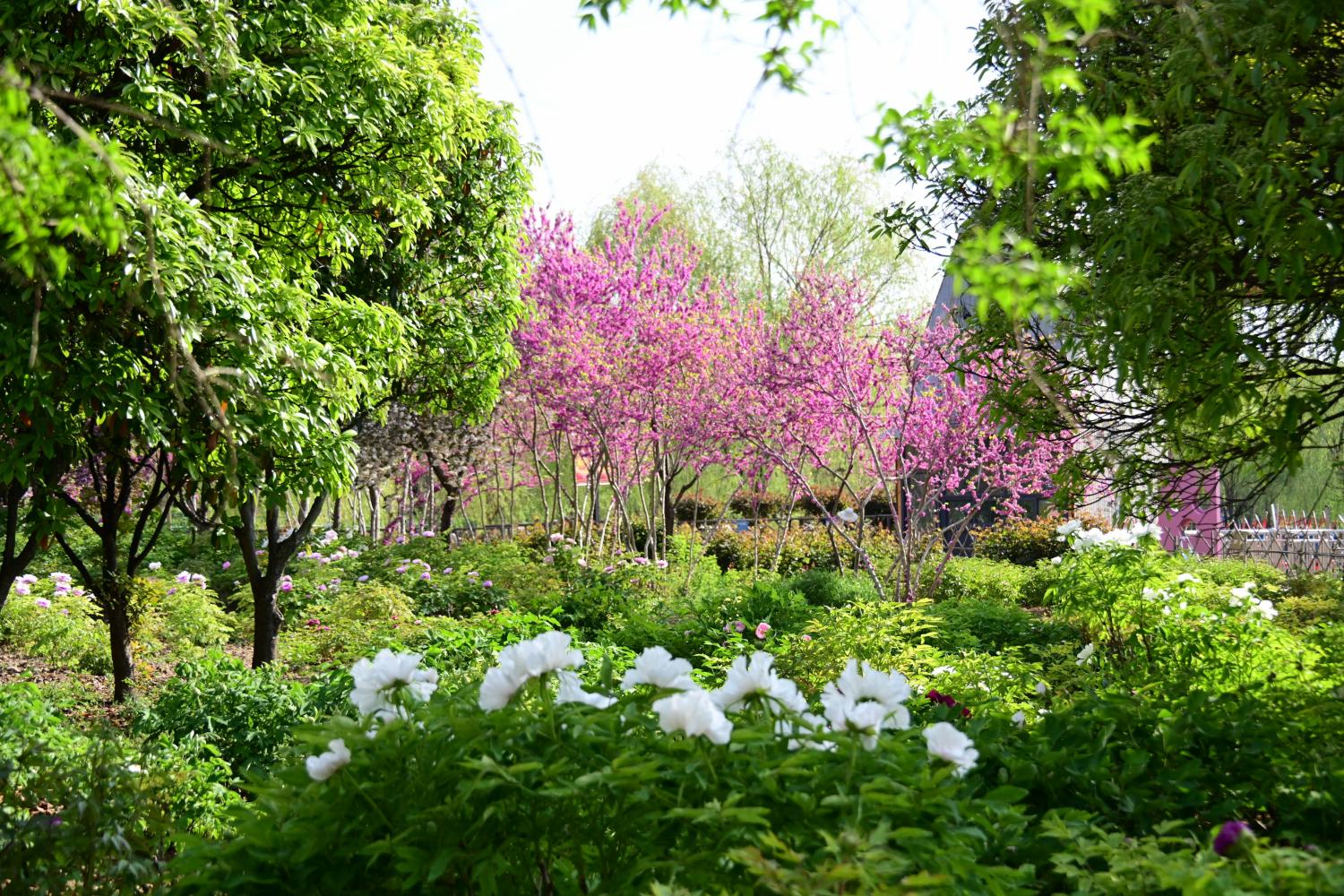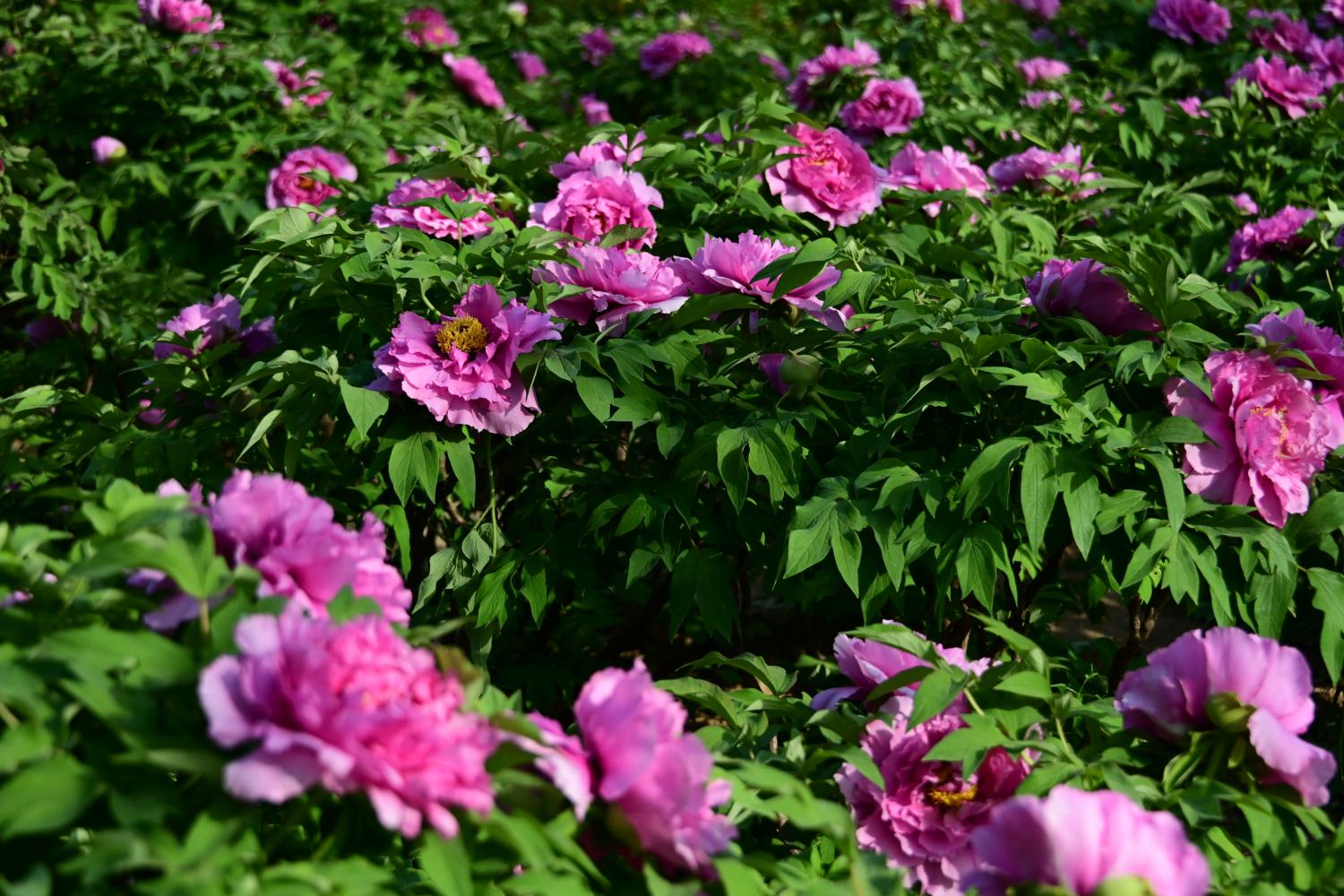 下图是更真实的场景,虽然开成了片,却还不是最盛的时候,但毕竟是赶上了牡丹花期,满足是满足的。