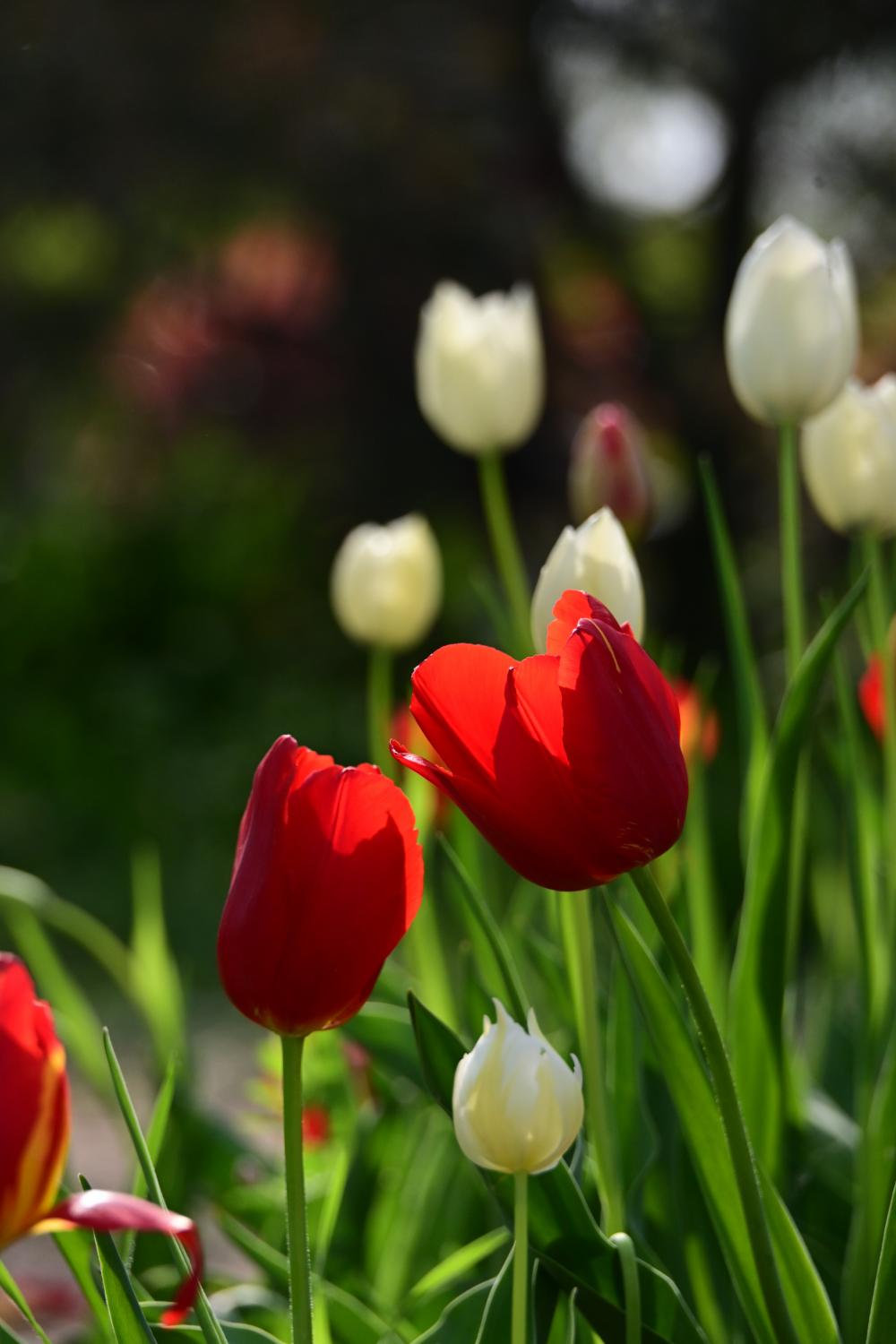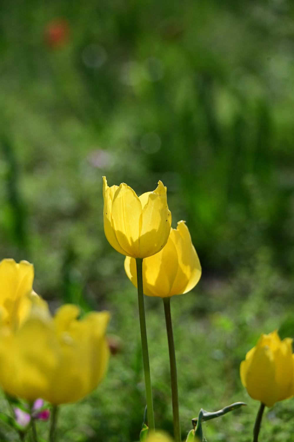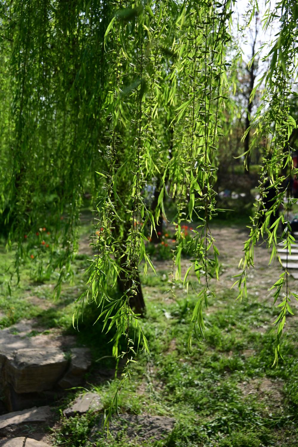 桥头的柳树下,还见到几株郁金香。