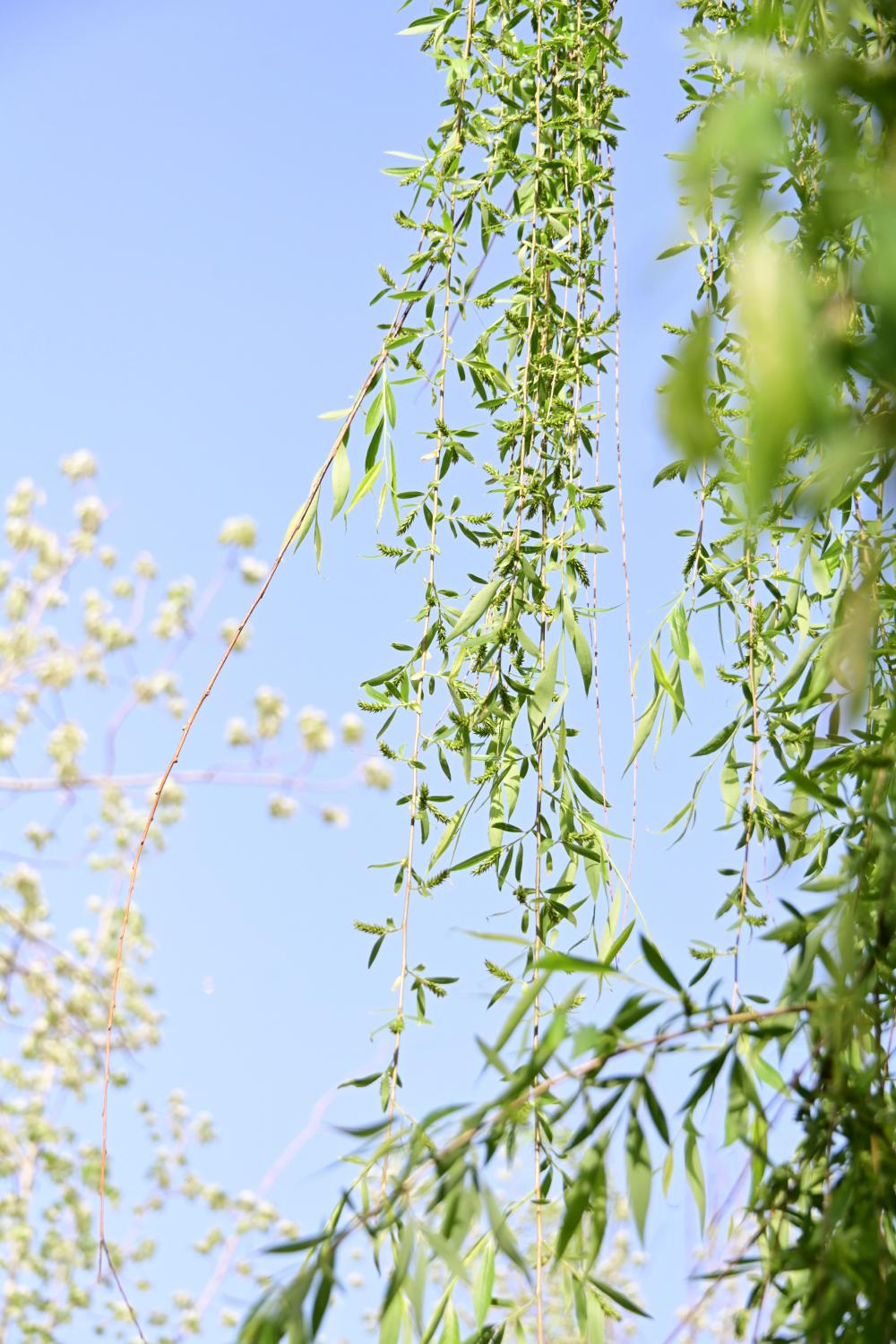 柳枝不仅仅是柳枝,还开着柳花。