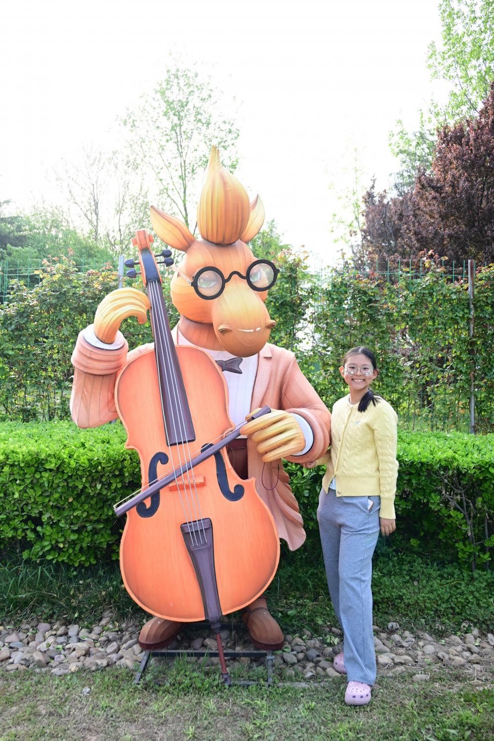 还遇到衣襟的生肖马,且是玩弦乐的马,合影更是不能不拍起来。