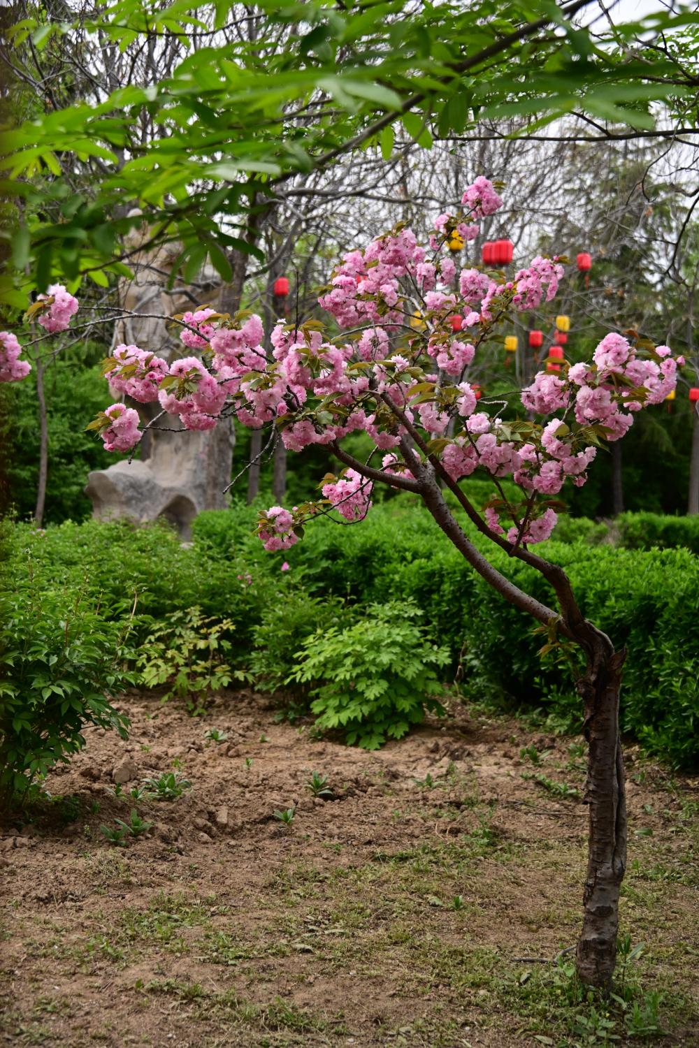 也有并不高大的晚樱,也是开满了花,显然,大家都在尽力。