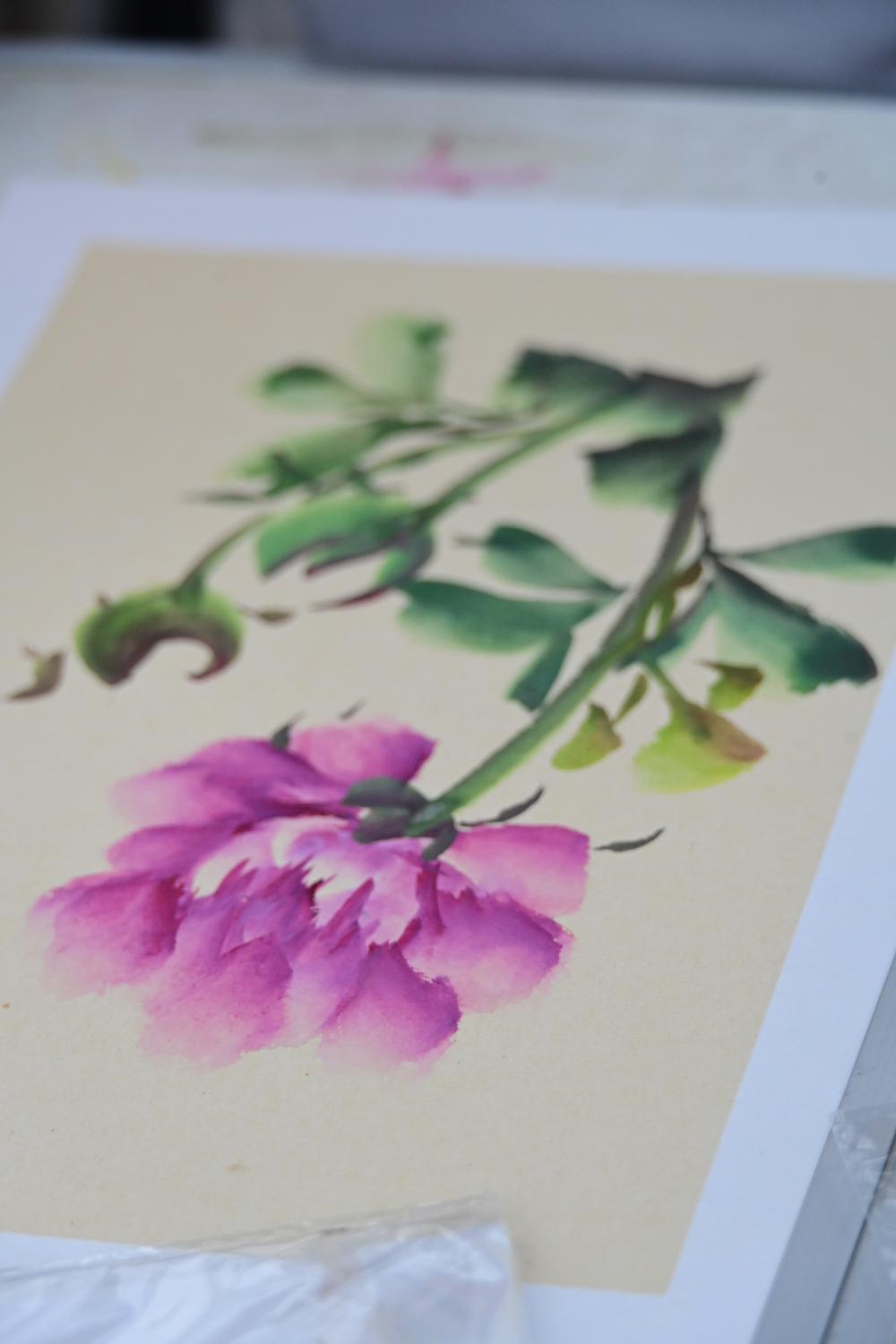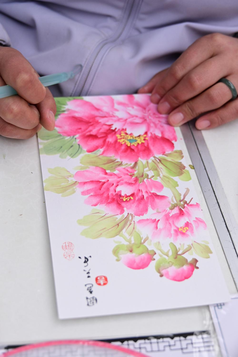 当然也有绘制中的牡丹。