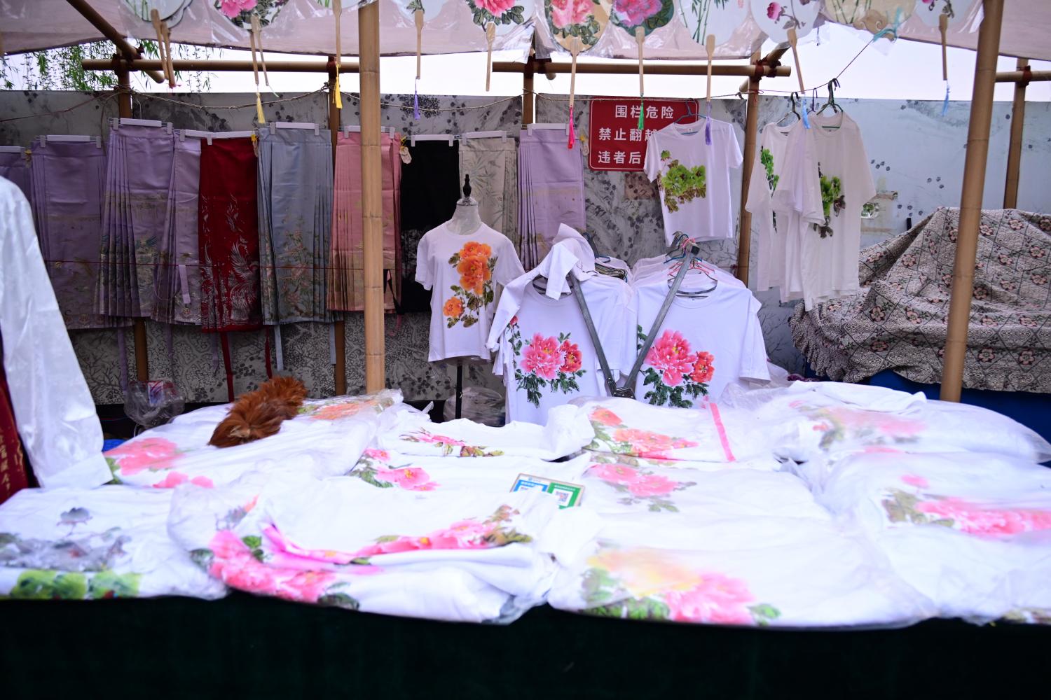还遇到绘了牡丹的T恤衫,大概50一件,如果穿在身上,会不会太花了呢?