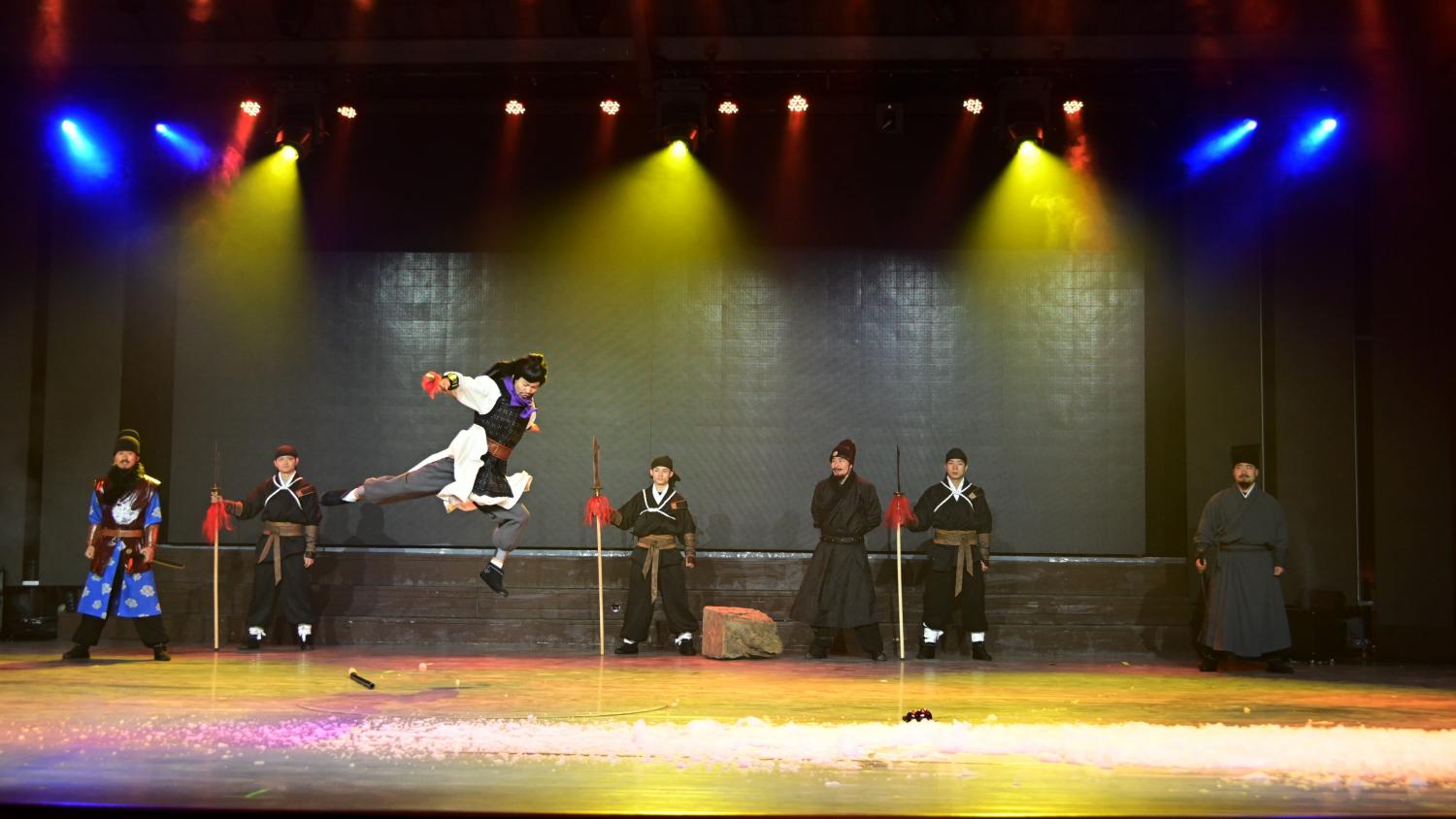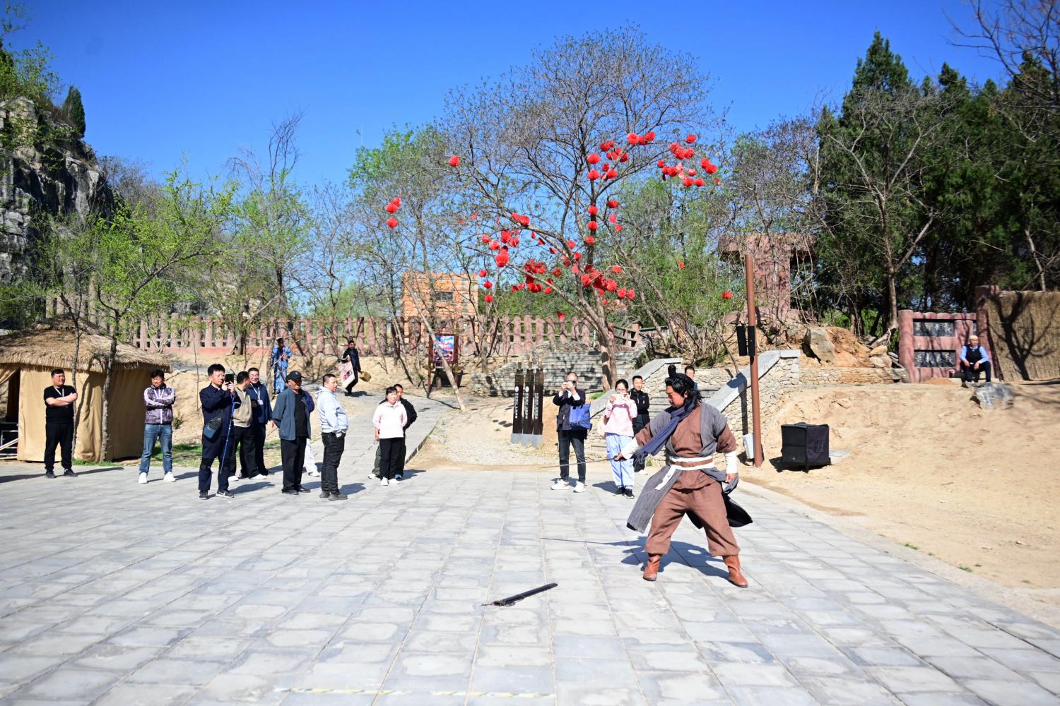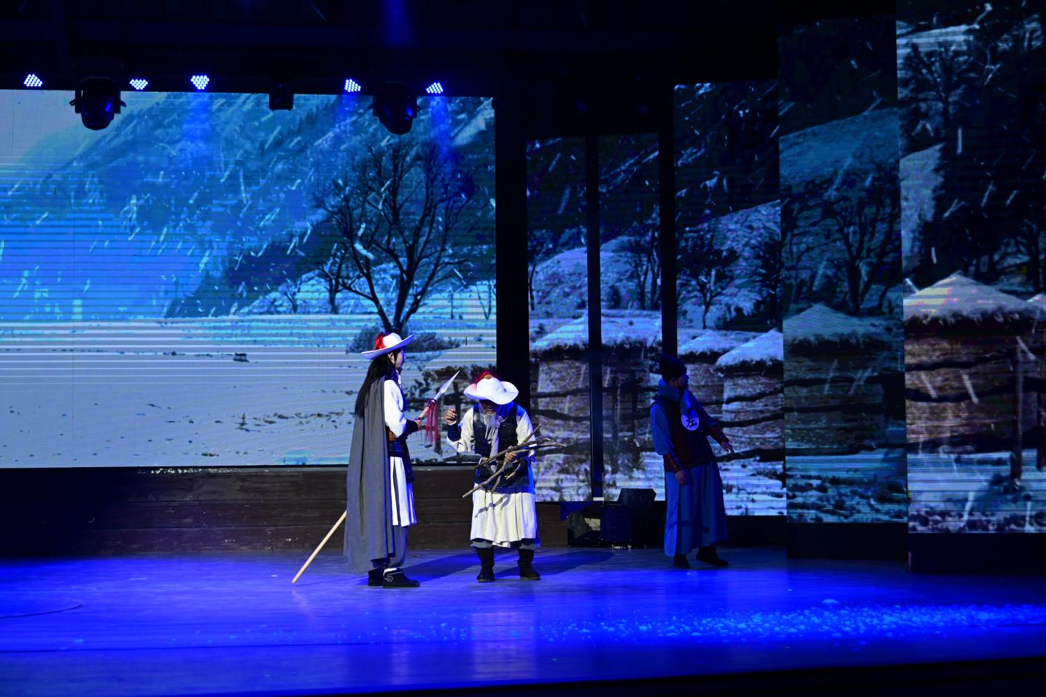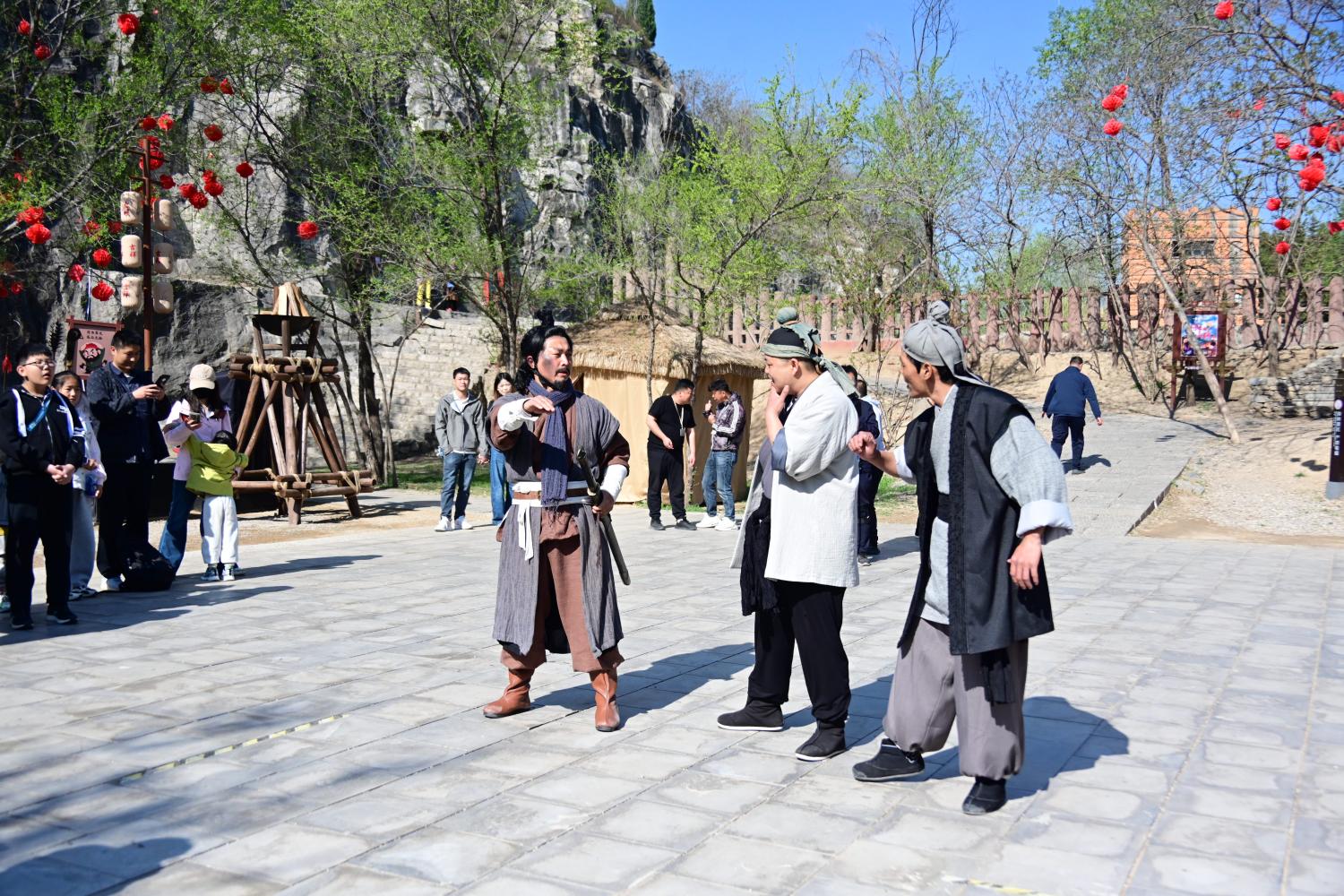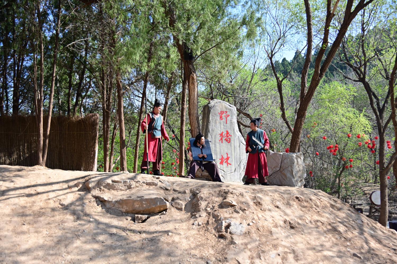 没走多远,就听到了表演现场的音响声,靠近一看,原来是来到了野猪林。耳熟能详的故事情节在眼前再现,演员们做得不错。