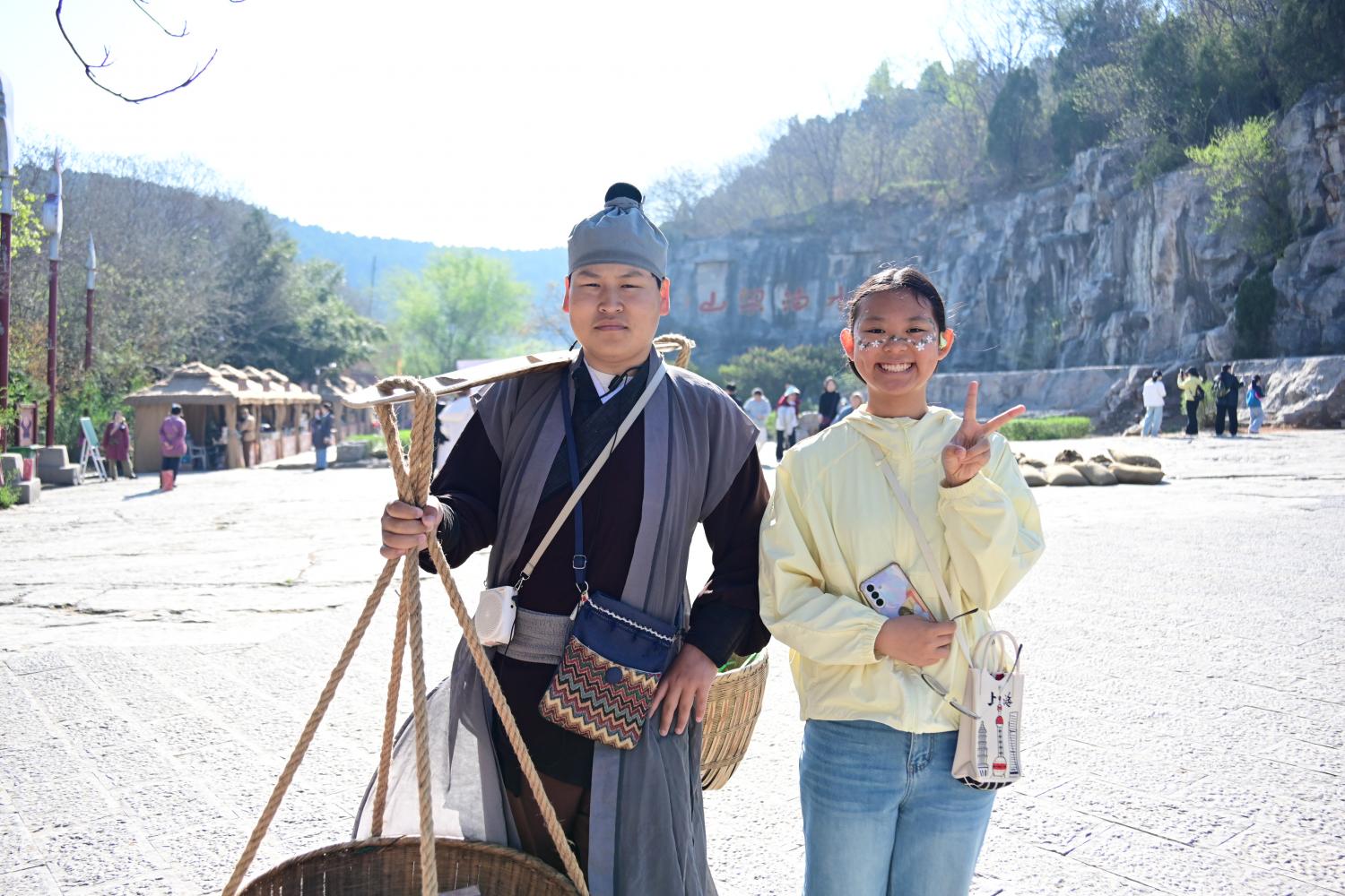 眼见着挑子主动靠过来,示意做为游客的我们可以体验挑担子。对挑担子是真的没兴趣,却对拍照有兴趣,于是愉快地合了影。